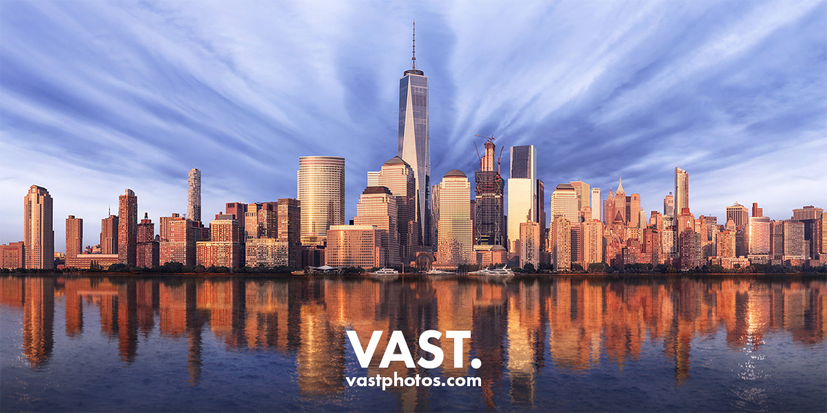 For example, the photo used earlier in this article is "A Golden Reflection", a VAST photo I created of the Lower Manhattan skyline at sunset. It is 51,951 pixels wide by 25,976 pixels high (1,349 megapixels). Therefore, if it is assigned a PPI of 300 (so that the print quality is perfect), it can be printed at a whopping 173 inches wide (51,951 pixels divided by 300 pixels-per-inch) and 87 inches high (25,976 pixels divided by 300 pixels-per-inch).