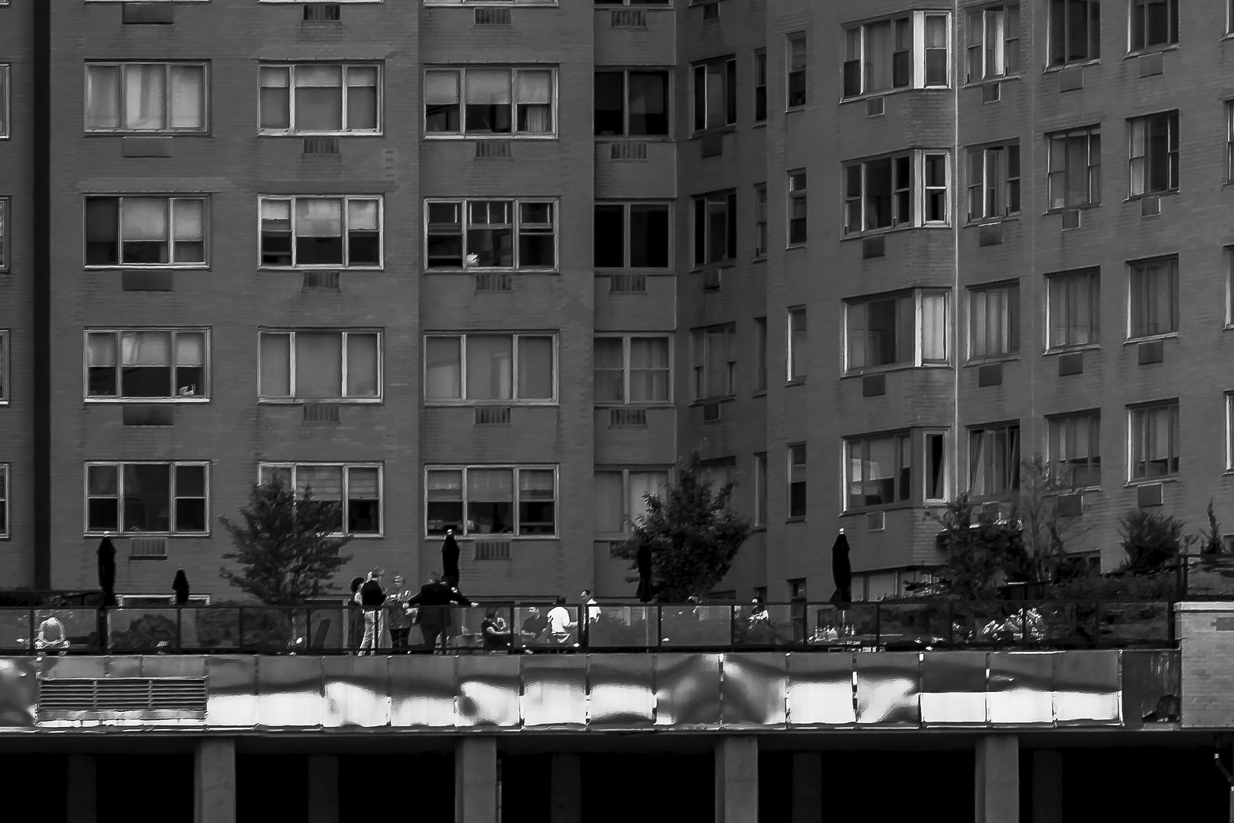 I worked furiously to capture hundreds of photos during the fleeting moments - many of which I later stitched together to create this 2,438 megapixel image (which makes it 12,000% larger than an ordinary professional photo). Throughout this scene, you'll find a couple embracing on the esplanade, a reader enjoying a good book on their 50th floor balcony, a group of people having a bbq party, and much more - all of them partaking in this magical moment with us.
