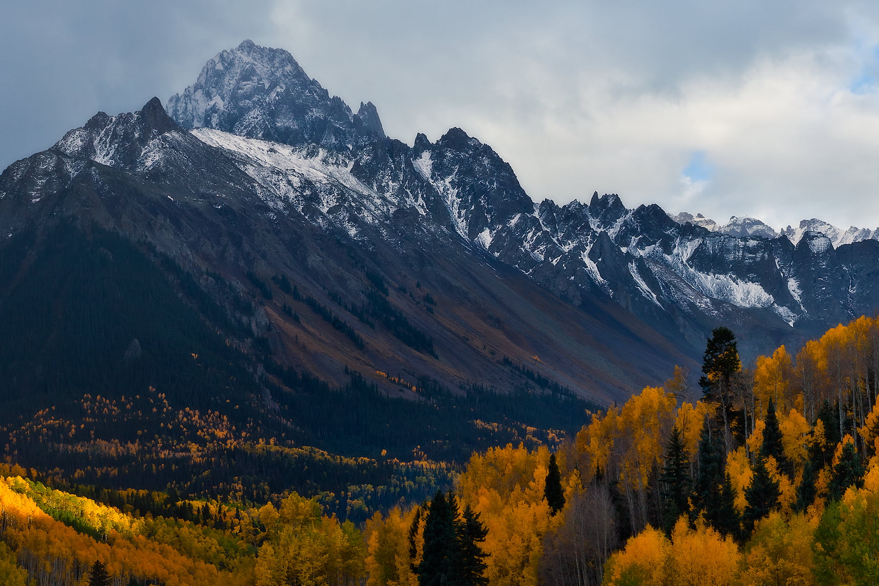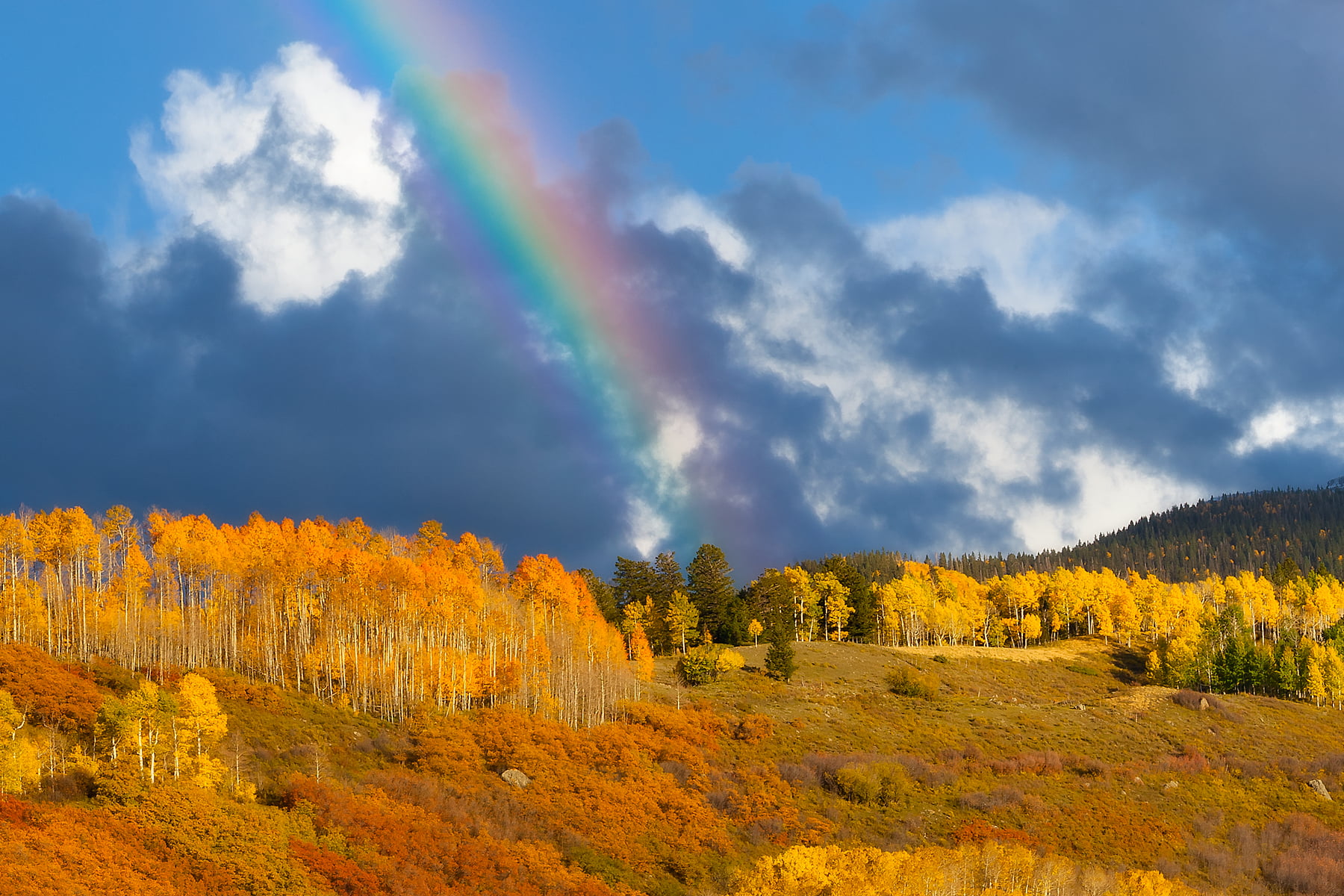 There are days and then there are good days. This was a particularly good day! There is nothing more grounding or more energizing than spending time in the mountains in the autumn. The distant snow covered peaks, the yellow leaves, the streams and waterfalls, the storms, sometimes snow, the secnts, the elk bugling in the distance, all add to the magic of the high country at this time of year. I love this valley with the majestic Mount Sneffels in the distance. A light rain shower in the late afternoon supplied me with a rainbow to top it all off! It doesn't get any better than this!