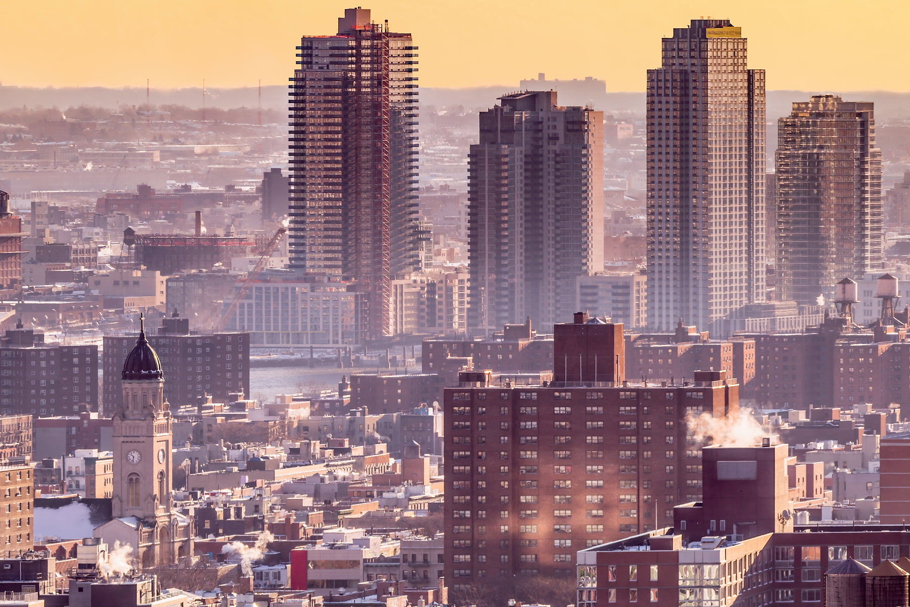 Little plumes of steam danced upward from many of the buildings as I painstakingly exposed the 110 individual photos that comprise this exceptionally high resolution VAST photo. The final photo's unmatched image quality reveals an astounding number of details comprising this special moment: cars speeding across the Williamsburg Bridge, Church steeples standing tall in the distant Brooklyn outskirts, early-risers going for a morning stroll, artful graffiti designs, the ornate SoHo cast-iron facades, the rooftop gardens of New York's elite residences, the modern Downtown Brooklyn skyline, and more.