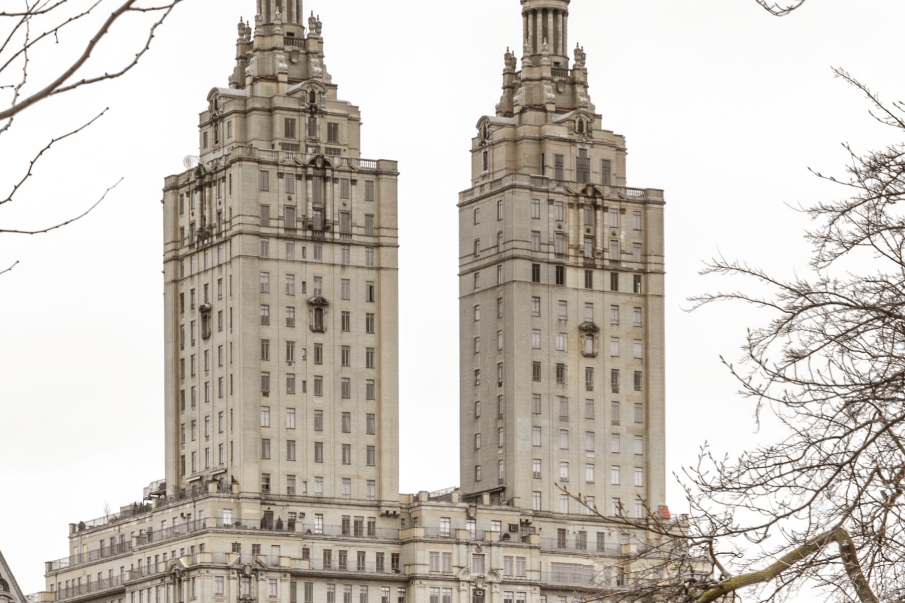 In the background, the iconic San Remo apartment towers rise above the park, blending seamlessly into the historic charm of the landscape. Designed by renowned architect Emery Roth, these twin towers have been a defining feature of the Upper West Side skyline, adding an element of grandeur to the natural setting. The park’s classic lampposts line the pathway, enhancing the timeless beauty of this renowned urban oasis.