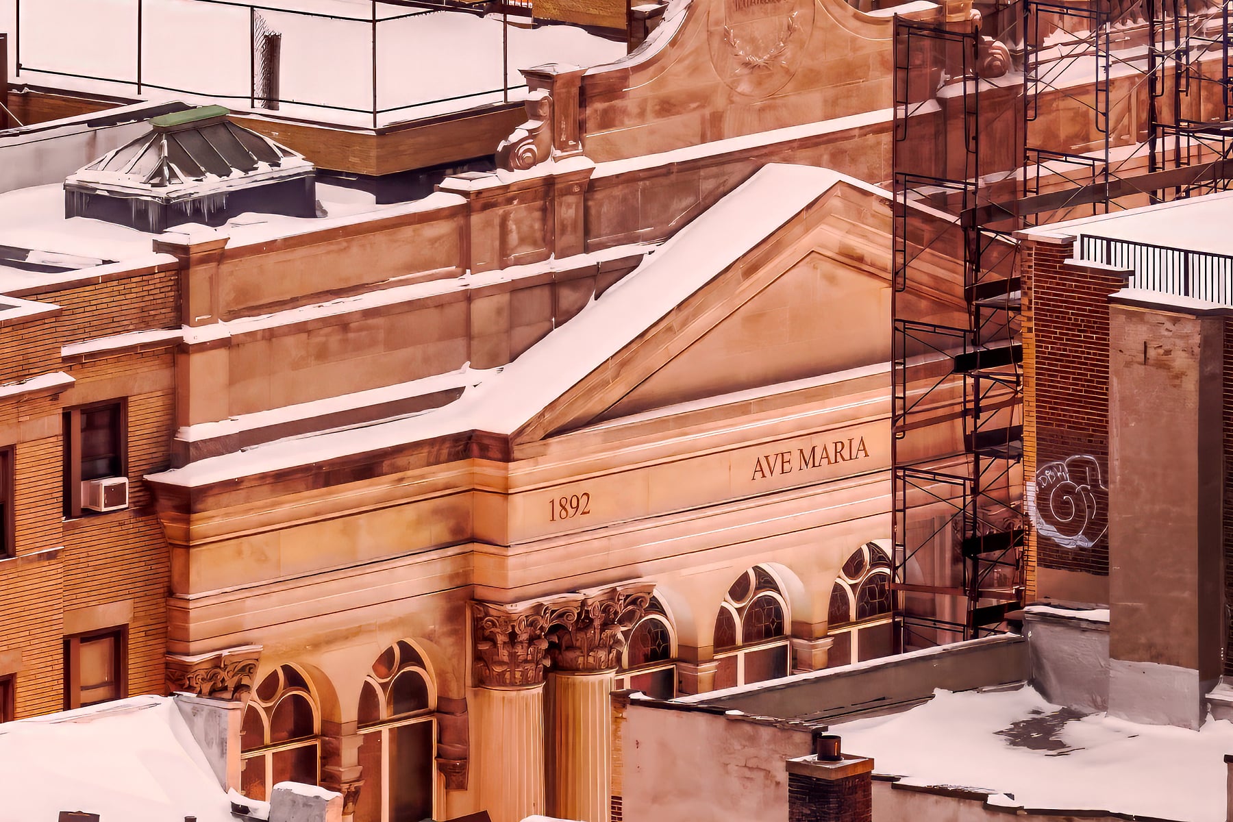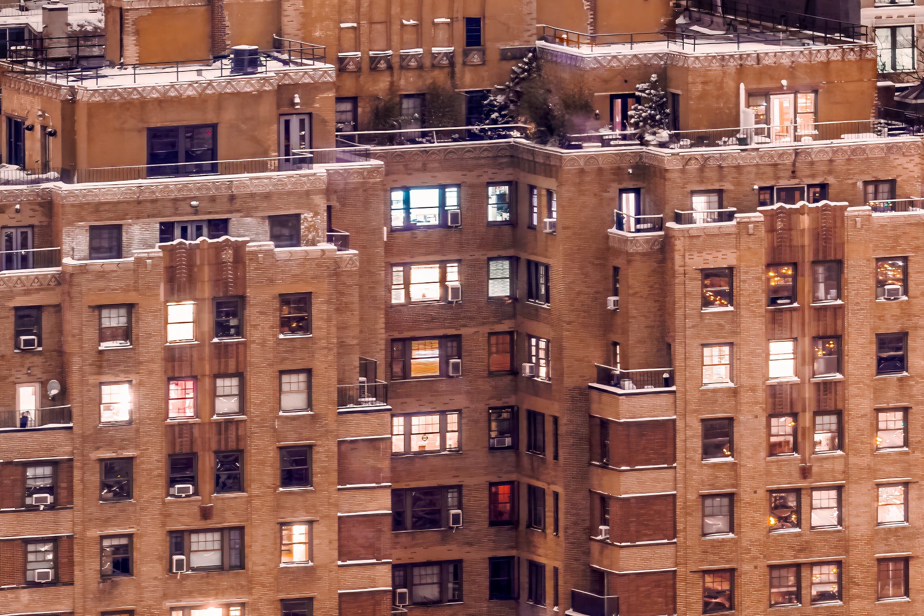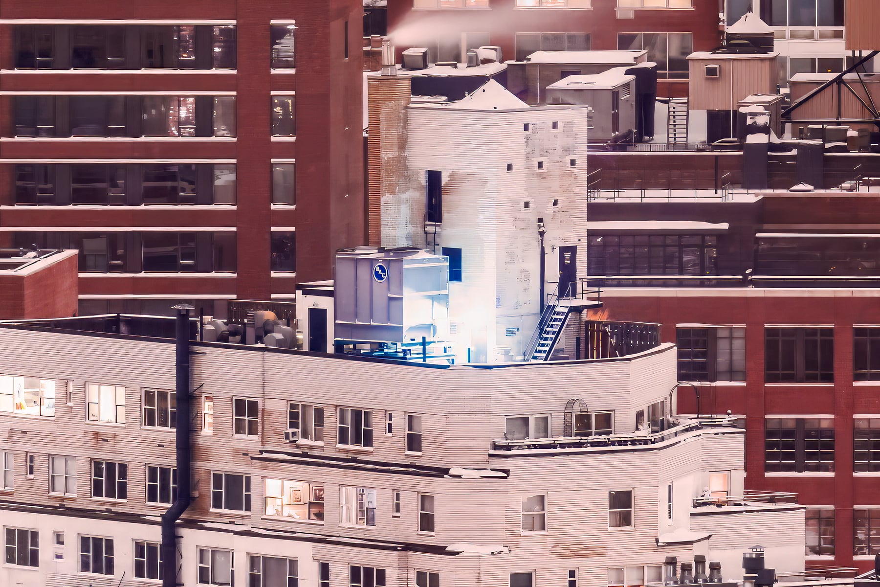 A snowstorm had just passed and a clear sky was allowing the moonlight to illuminate the snow-covered rooftops in a sparkling white sheen. Residents, cozy in their homes, socialized behind glowing windows dotting the cityscape. 7th avenue, one of the arterial thoroughfares through the neighborhood, was abuzz with foot traffic as New Yorkers strolled into its famous shops and eateries.