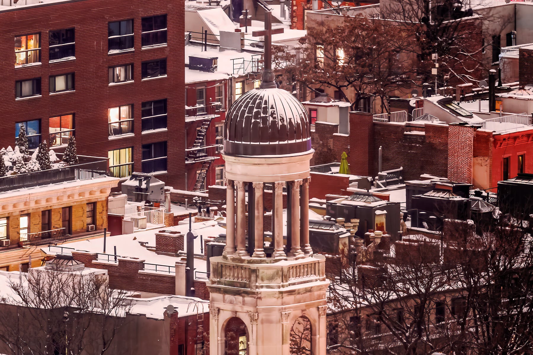 I wanted to create an image that conveyed the warm, quaint energy of this winter scene and respected the neighborhood which, in many New York photographs, plays second fiddle to the adjacent imposing skylines that dwarf it. So, I set up my camera gear and prepared for a composition that placed the radiant 7th avenue directly centered. Furthermore, I planned for a very close crop to ensure that the iconic neighborhood was the sole focus and content of the image.