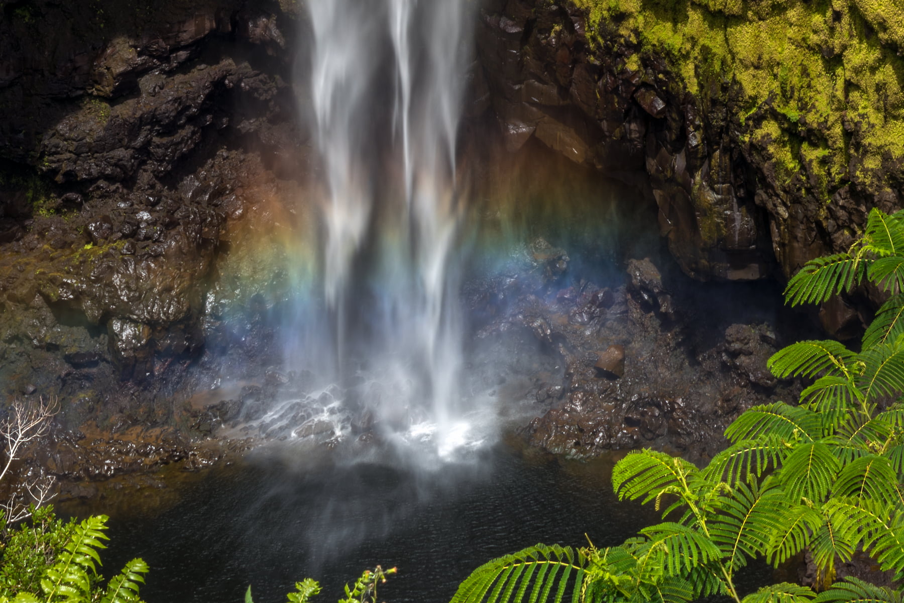 Adding to the allure of this VAST photo is the rainbow that appears at the base of the falls. Hawaii is such a magically beautiful place and this rainbow is further testament to that.