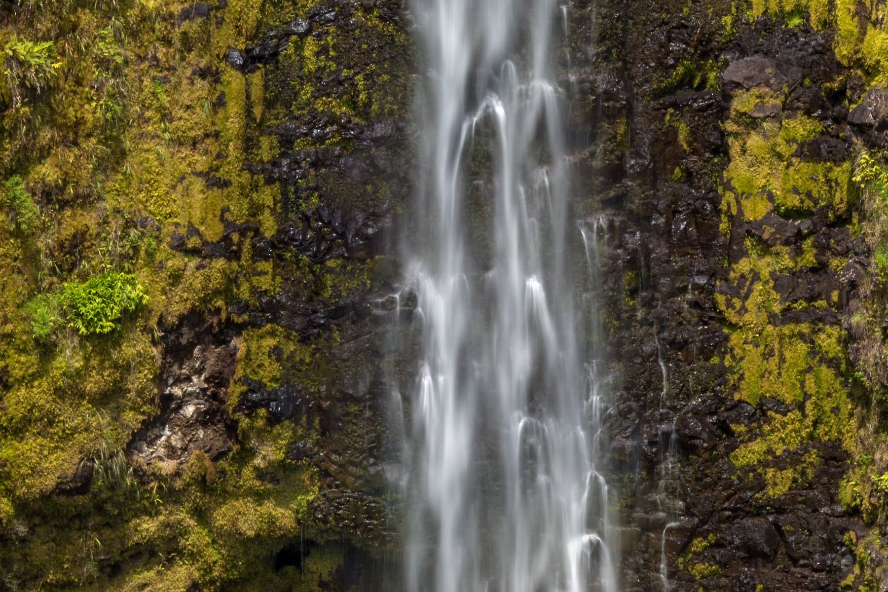 On this particular day, the volume of water falling was somewhat diminished, leading to more distinct patterns in the falls becoming visible – something I prefer over an overflowing waterfall that just becomes a monotonous wall of white. When this low-water-flow situation is paired with long-exposure photography, the result is an image that has silky smooth water patterns cascading down the rocks, creating fascinating patterns that draw viewers’ eyes.
