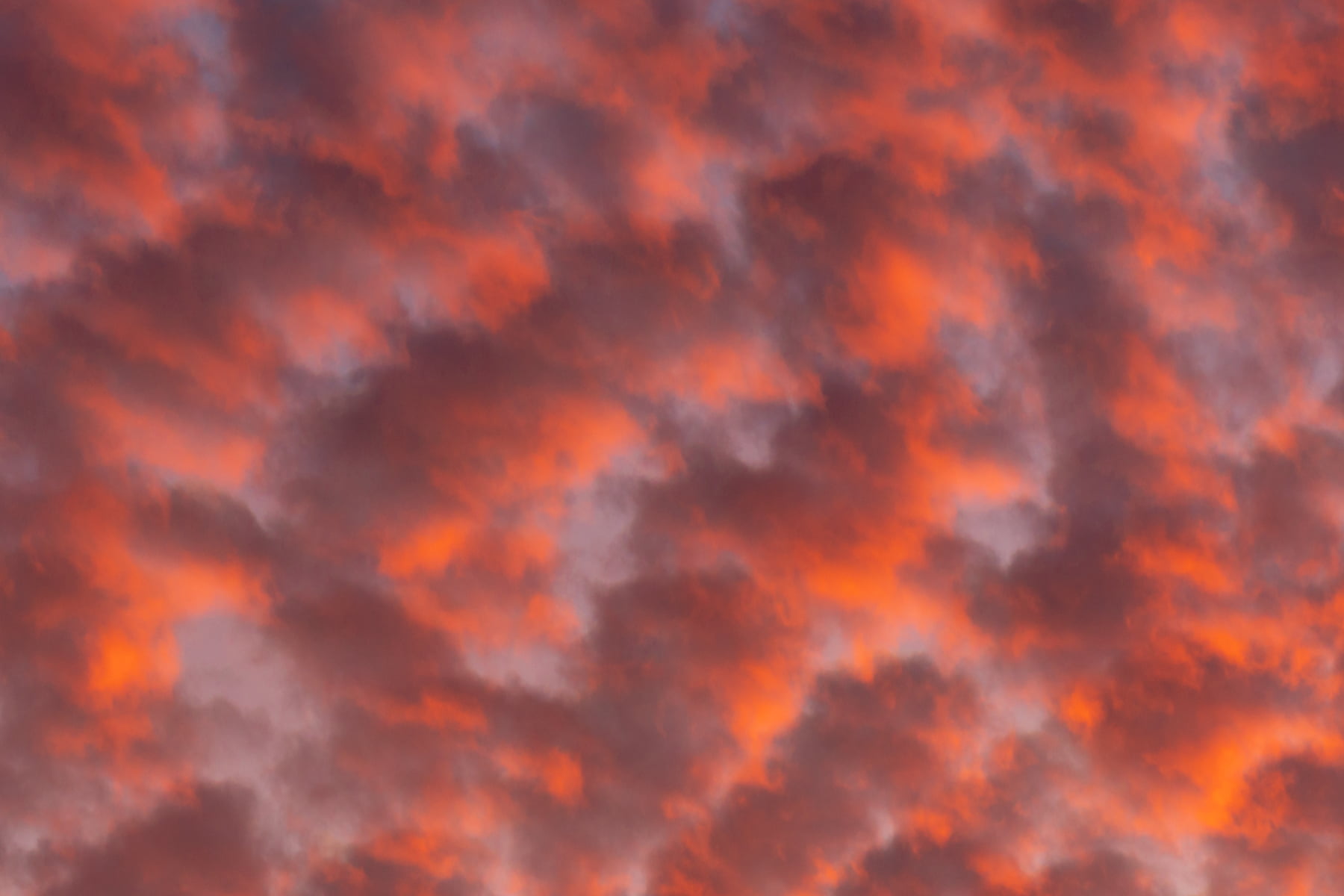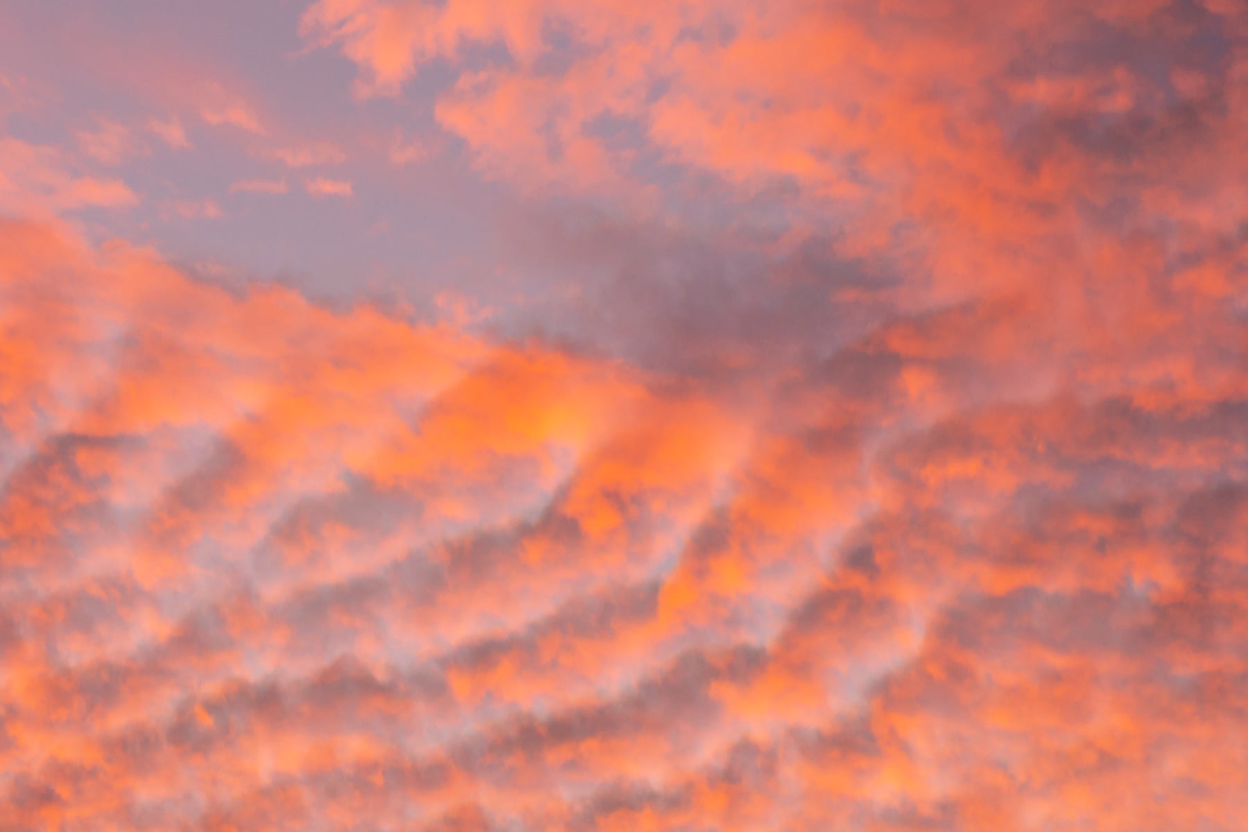 As a meteorologist, this is my time to geek out, and share with you what makes this scene unique! What you see is largely a blanket of altocumulus clouds. Altocumulus clouds are small "puffs" of clouds that are formed by small pockets of air rising in the mid-levels of the atmosphere. They are often referred to as a "mackerel sky", and they can make for some of the most spectacular sunsets.