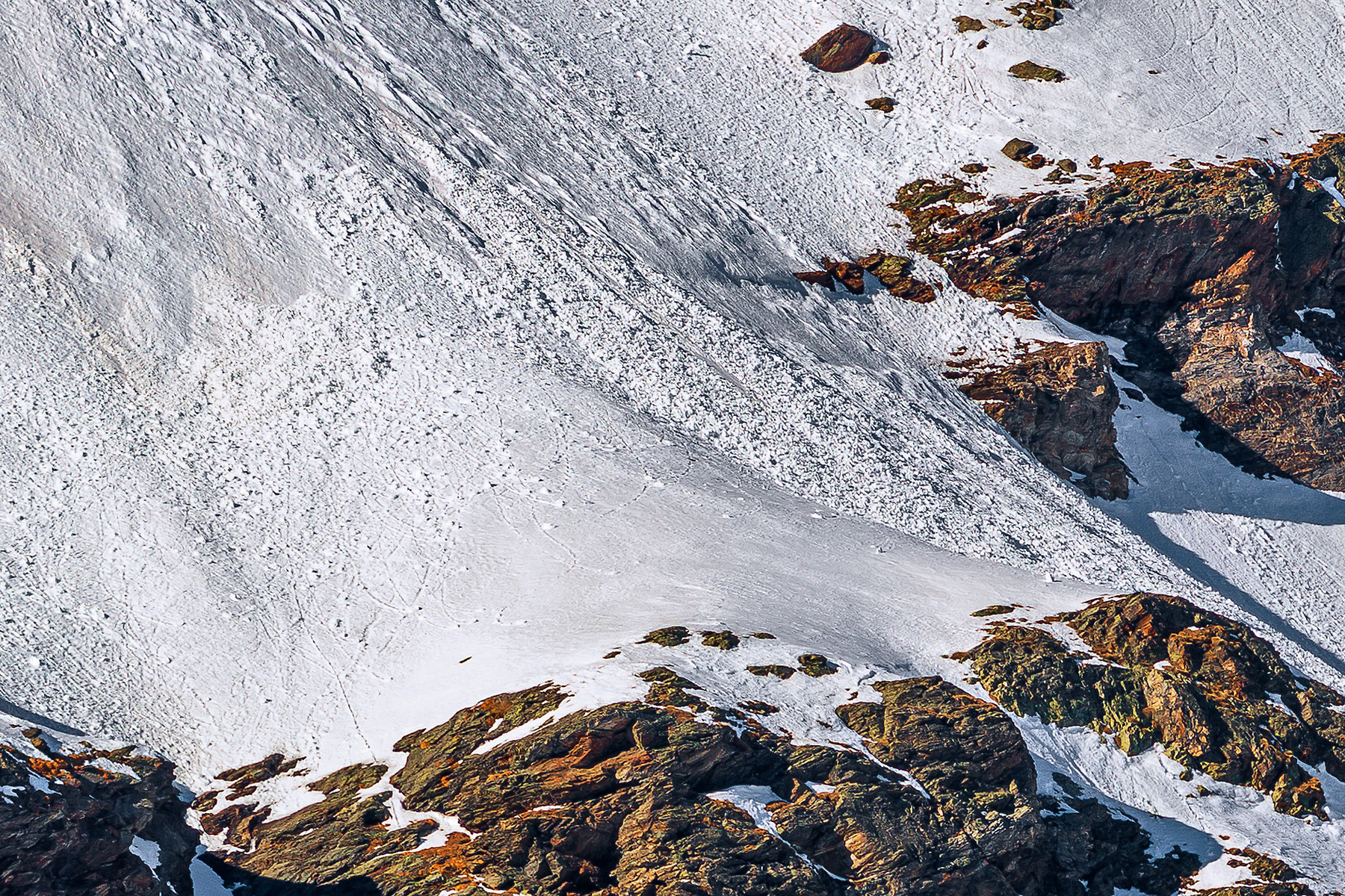 The lower part of the Matterhorn consists of gabbro, while the central part consists mainly of ortogneiss, a high-grade metamorphic rock formed due to the collision between plates from Europe and Africa. This collision, which probably occurred around a hundred million years ago, raised the mountain range of the Alps, forming numerous peaks.