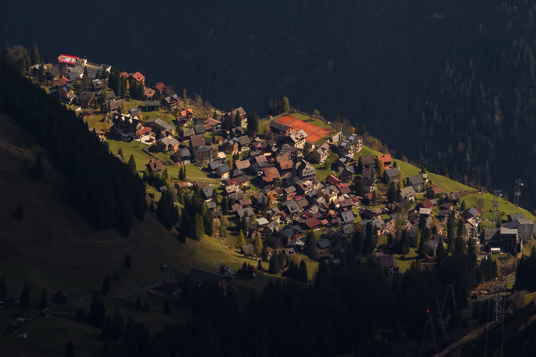 I took this photo from near the summit of Schilthorn, which towers above the villages of Mürren and Lauterbrunnen in the Jungfrau region of the Bernese Alps.