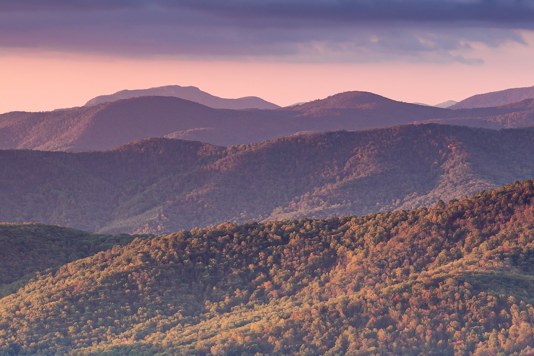 The Appalachian Mountains is the oldest mountain range in North America. Once as tall as the Alps, millions of years of ice and water wore down these mountains into the beautiful rolling hills and broad valleys that we see today. This particular view is from the Range View Overlook in Skyline Drive, in Shenandoah National Park, Virginia. Skyline Drive is a small section of the greater Blue Ridge Parkway that winds into southwest Virginia and North Carolina into the Smokey Mountains.