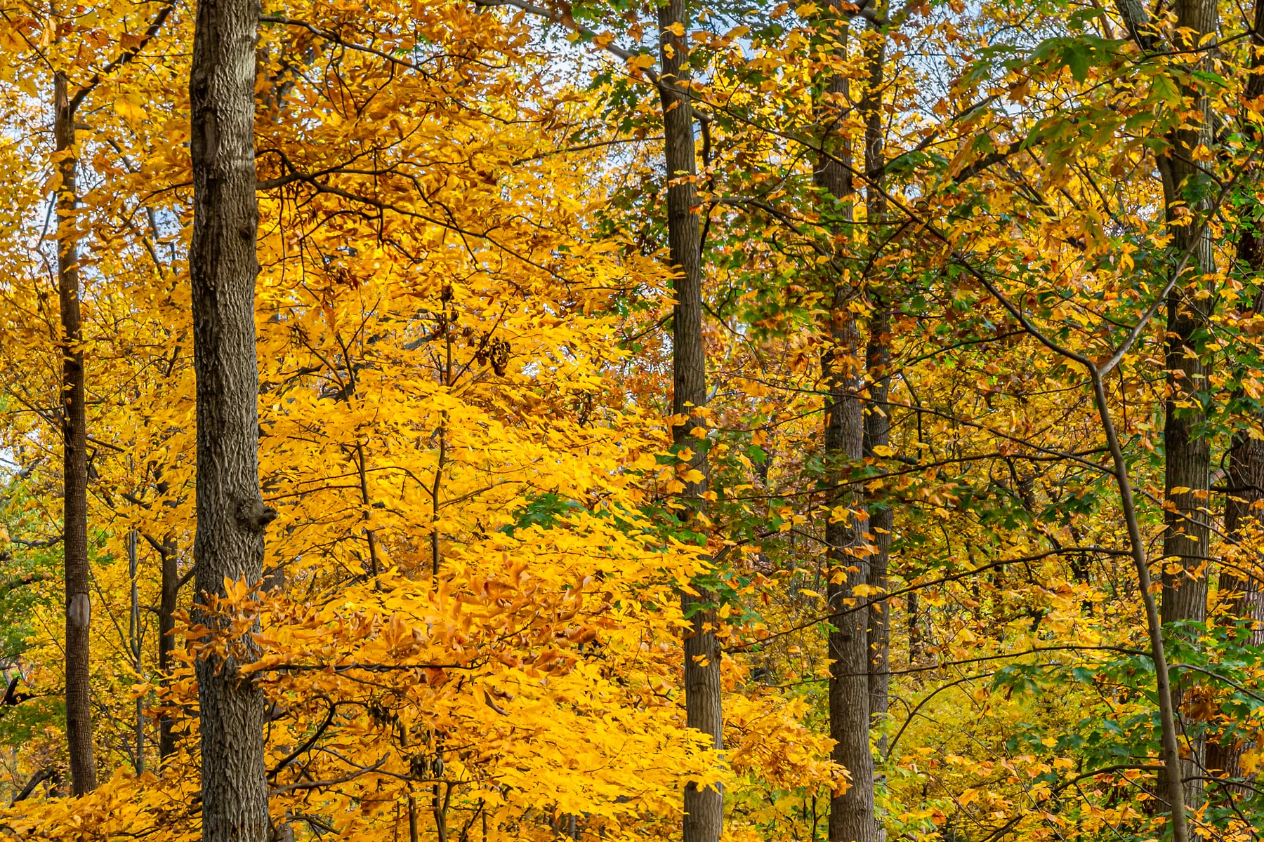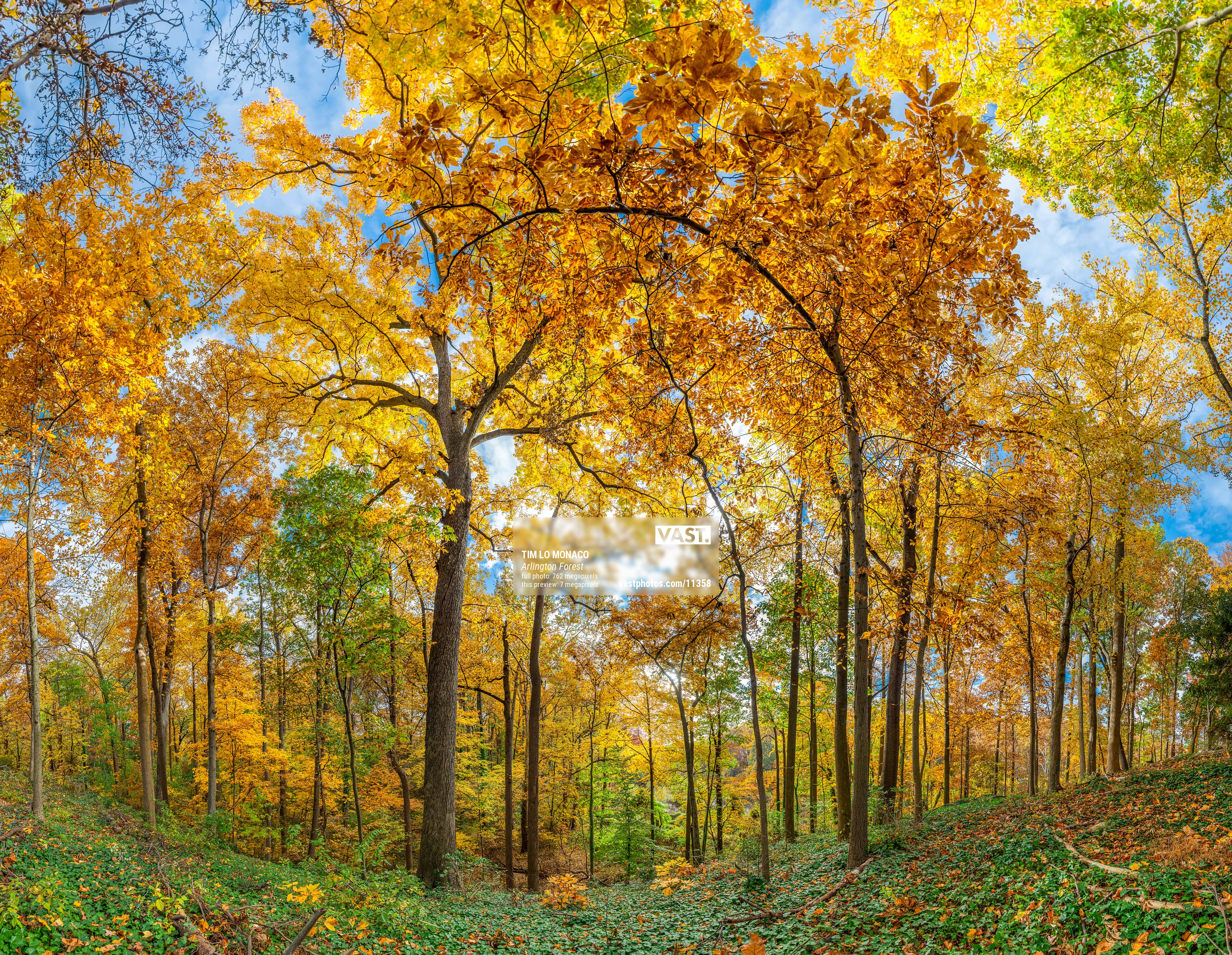 This shot wasn’t even my original intention. Rather it was something I couldn’t resist but to shoot the morning after I took my young daughter to get some photos of her in playing in the leaves in autumn. In the morning not long after sunrise, the light burst through trees in the forest, illuminating the leaves, making for brilliant and bold colors of the peak fall foliage. The types of trees found in Arlington Forest are varieties of Oak, Poplar, Sycamore, Birch, and Elm to name a few.
