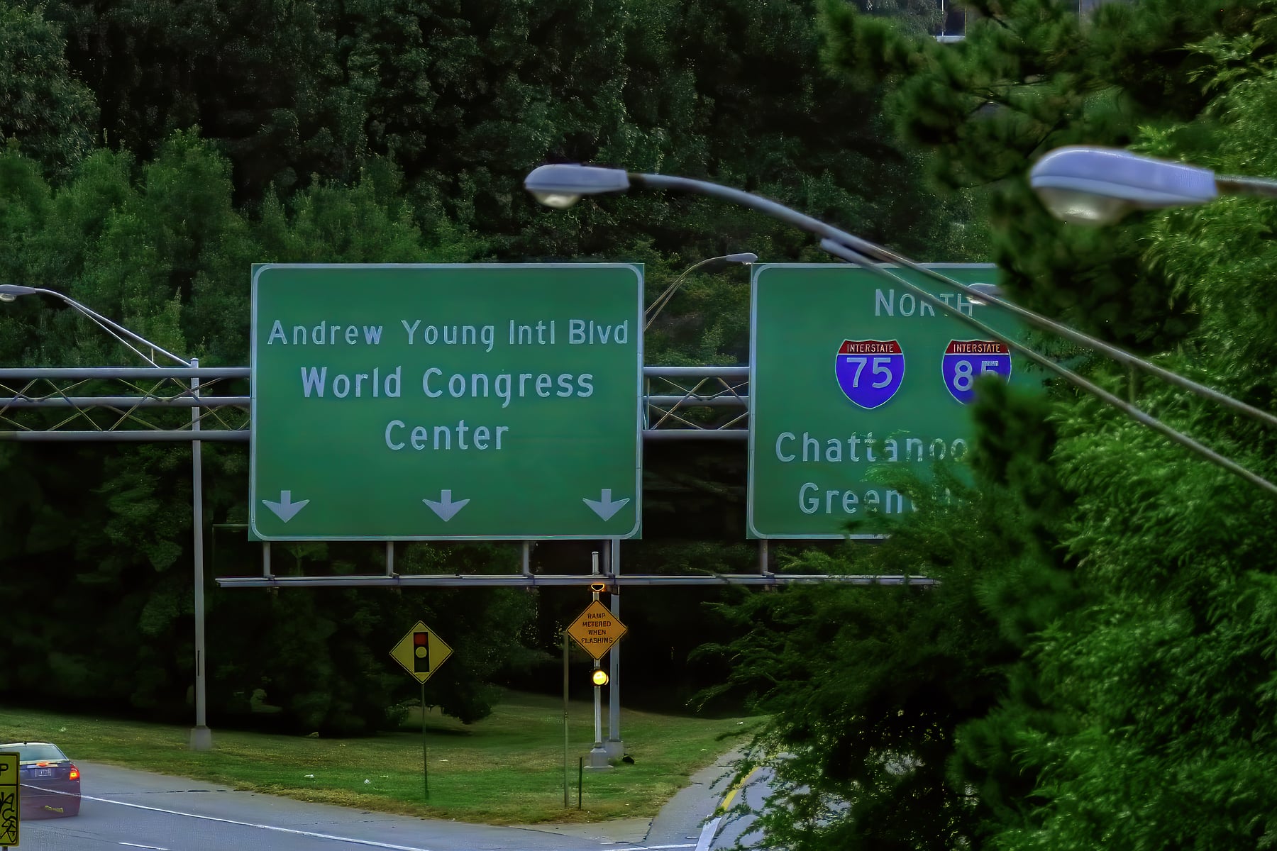 The view of the Atlanta skyline at sunset as seen from Jackson street bridge. This viewpoint has become very popular due to the AMC series The Walking Dead and indeed at the time I shot this, there were many people taking their own snapshots.