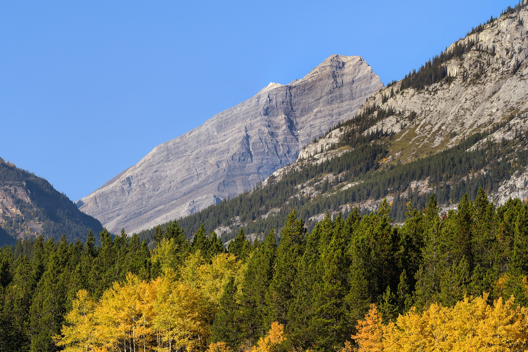 2,018 megapixels! A very high resolution, large-format VAST photo print of an autumn morning at a lake with a perfect reflection of mountains and a blue sky; landscape photograph created by Scott Dimond in Wedge Pond, Kananaskis Country, Alberta, Canada.