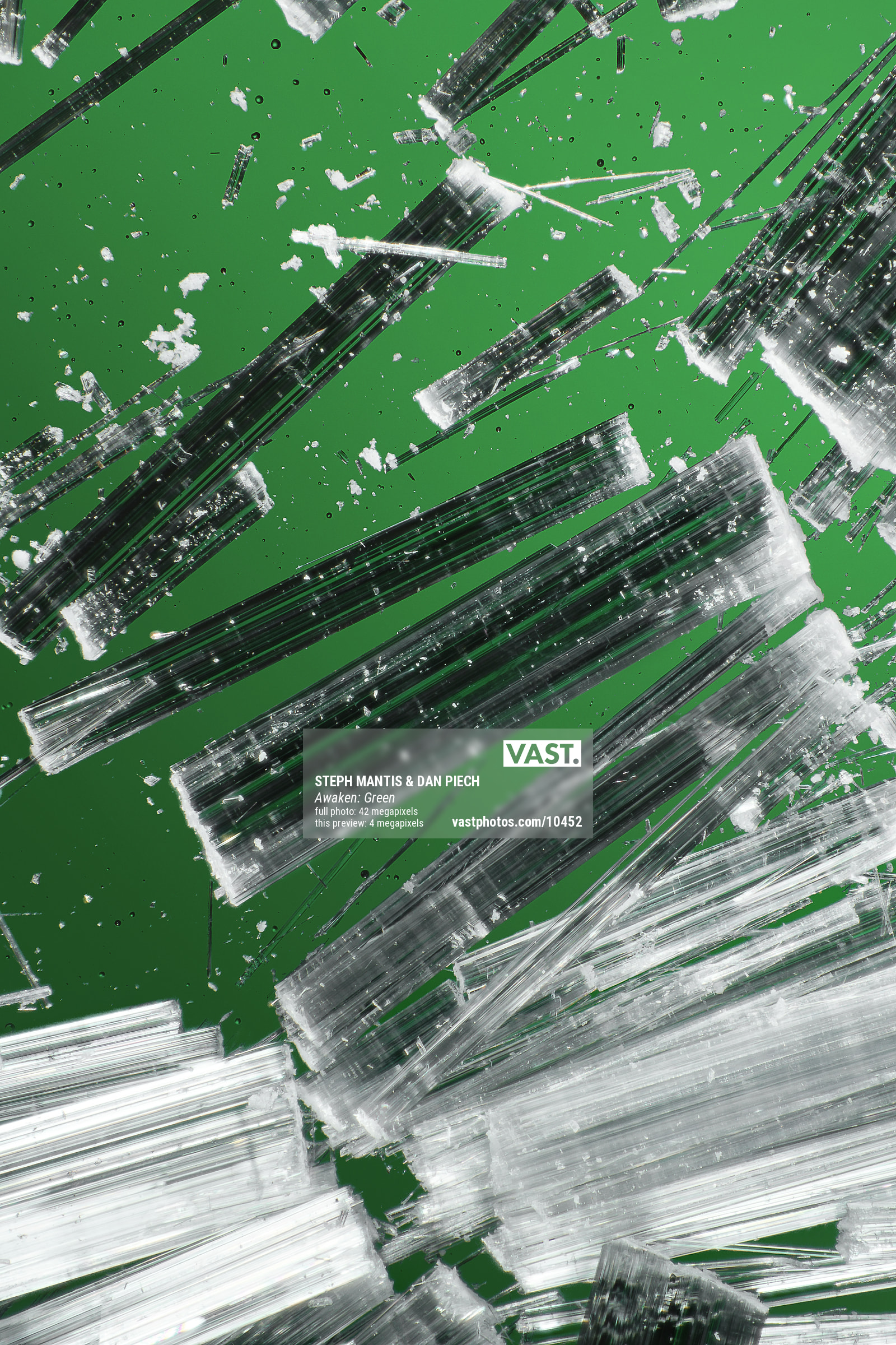 Imbued with the captivating energy that artists Steph Mantis and Dan Piech bring to their work, the Awaken series of VAST photos represents a collaboration of creative and technical mastery. The series explores the artistic beauty of microscopic selenite crystals photographed at extraordinarily high resolutions using specialty equipment and innovative techniques.
