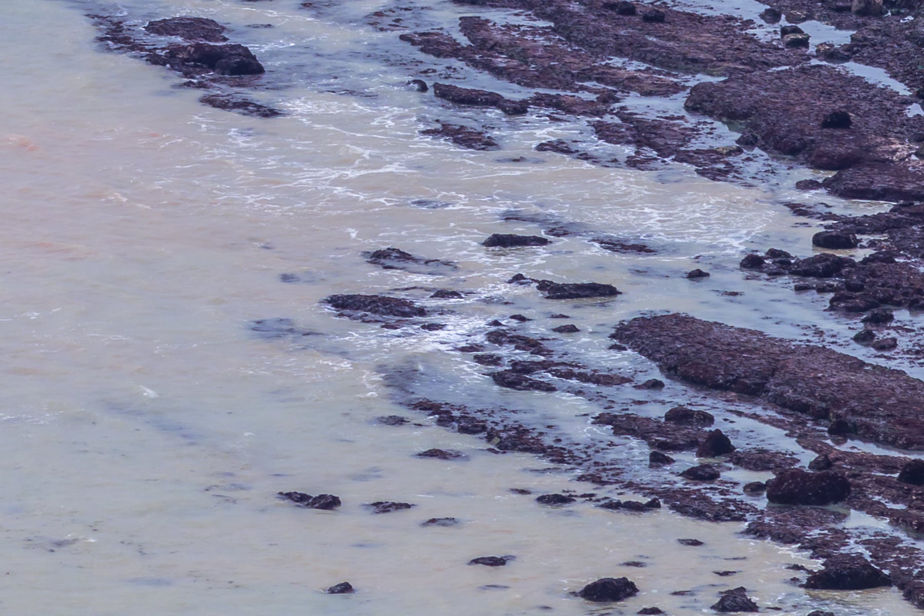 The photograph beautifully showcases the rugged natural beauty of the South Coast, highlighting the steep, textured cliffs and the expansive sea. The soft gradient of the sky, transitioning from gentle morning light to the horizon, adds a sense of calm and tranquillity to the scene. The cliffside greenery adds a touch of natural colour, enhancing the overall aesthetic of the image.
