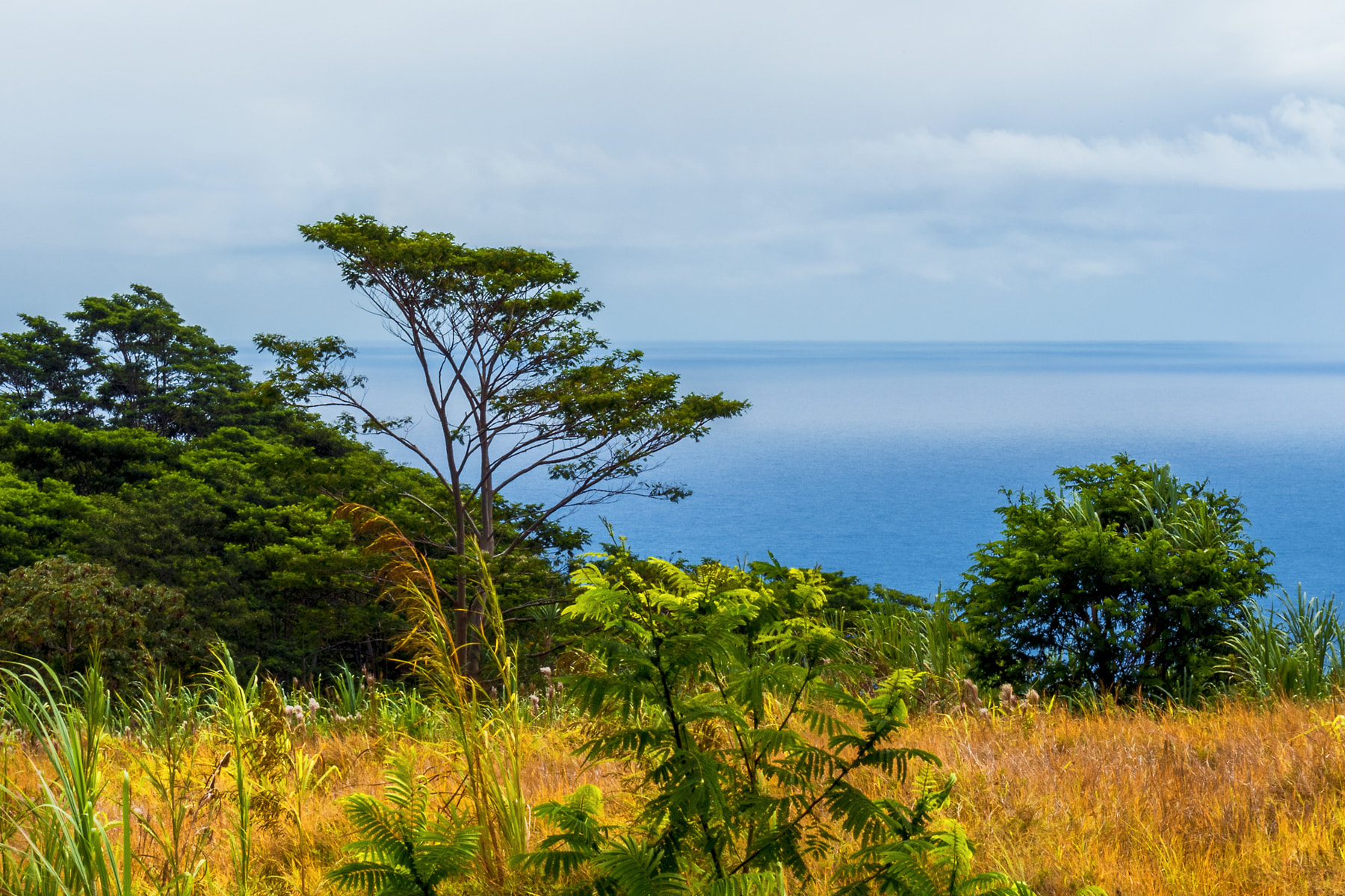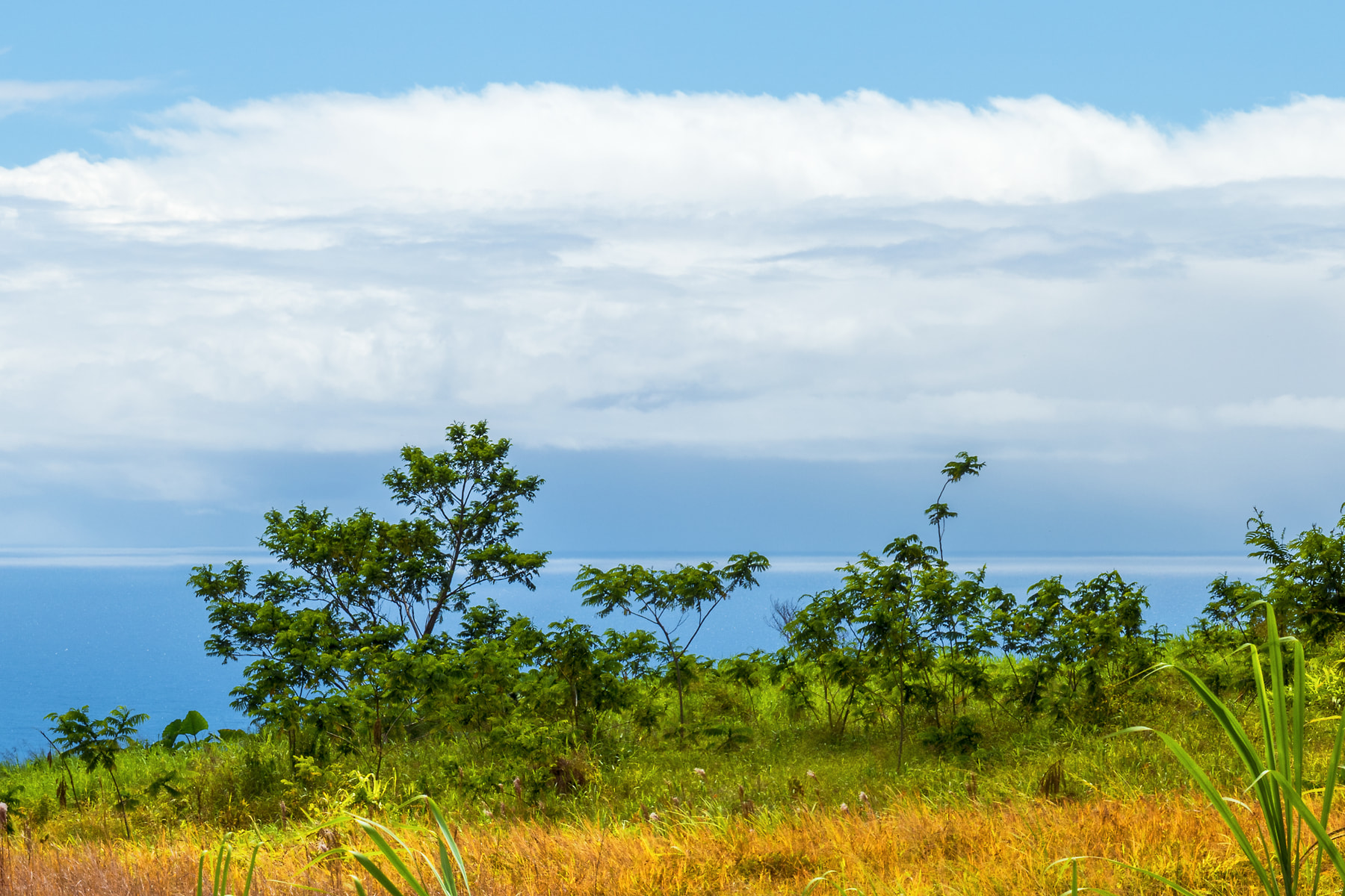 While on the way to photograph Akaka Falls near Honumu, I stopped to photograph this delightfully lush ocean view that is representative of the beautiful green and gold vegetation on Hawaii’s north and eastern shores. It is quite the contrast to the barren volcanic landscape on the western side of the Big Island.
