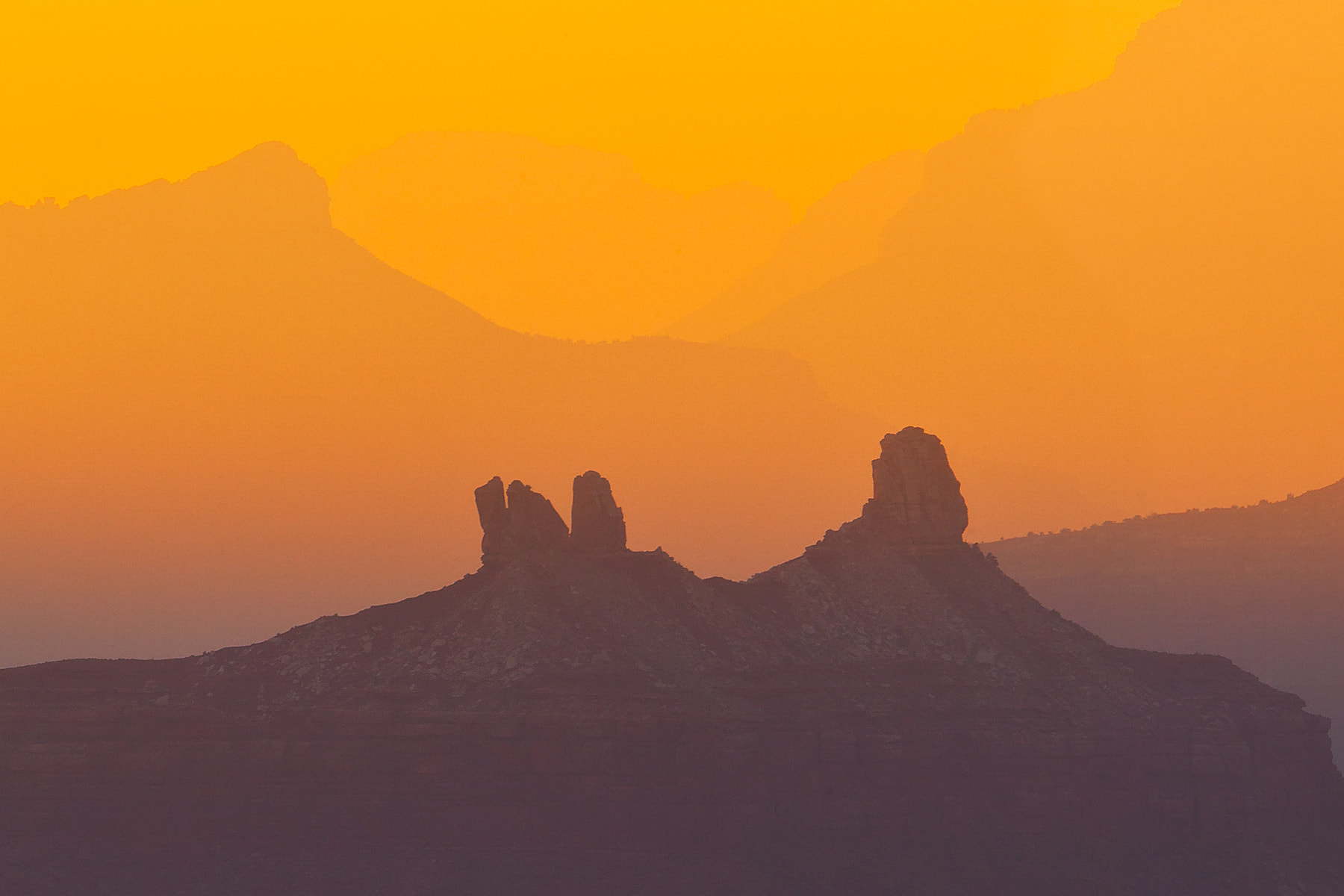 The immensity of the Grand Canyon cannot be expressed in words, paintings, or even photographs. You have to go there and stand on the rim to get the full measure of the place. Millions of years in the making, this place is truly awe inspiring. On this particular evening I went out to one of the lesser visited overlooks and awaited sunset. A forest fire on the South Rim filled the canyon with smoke which allowed for this golden light and endless ridglines.