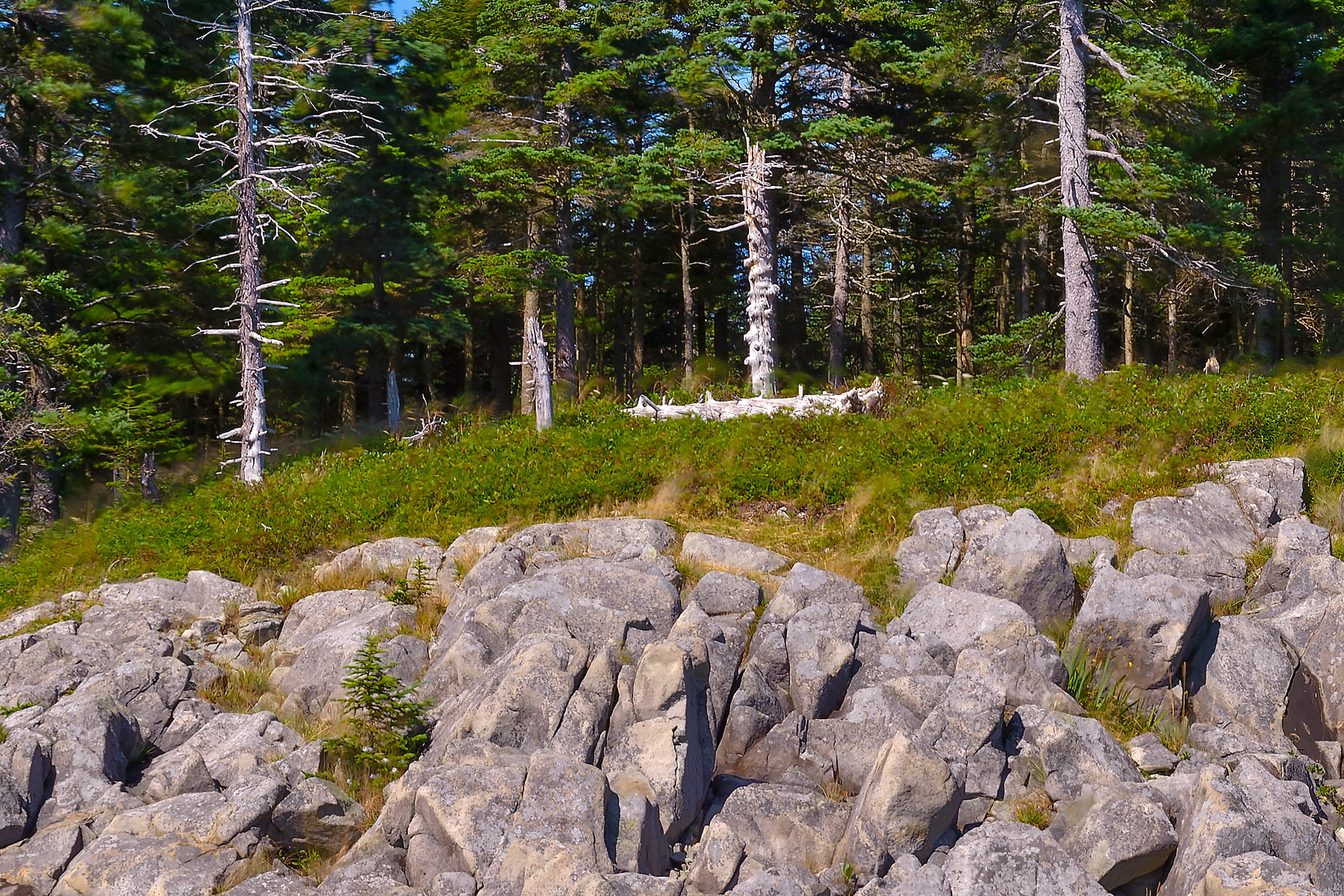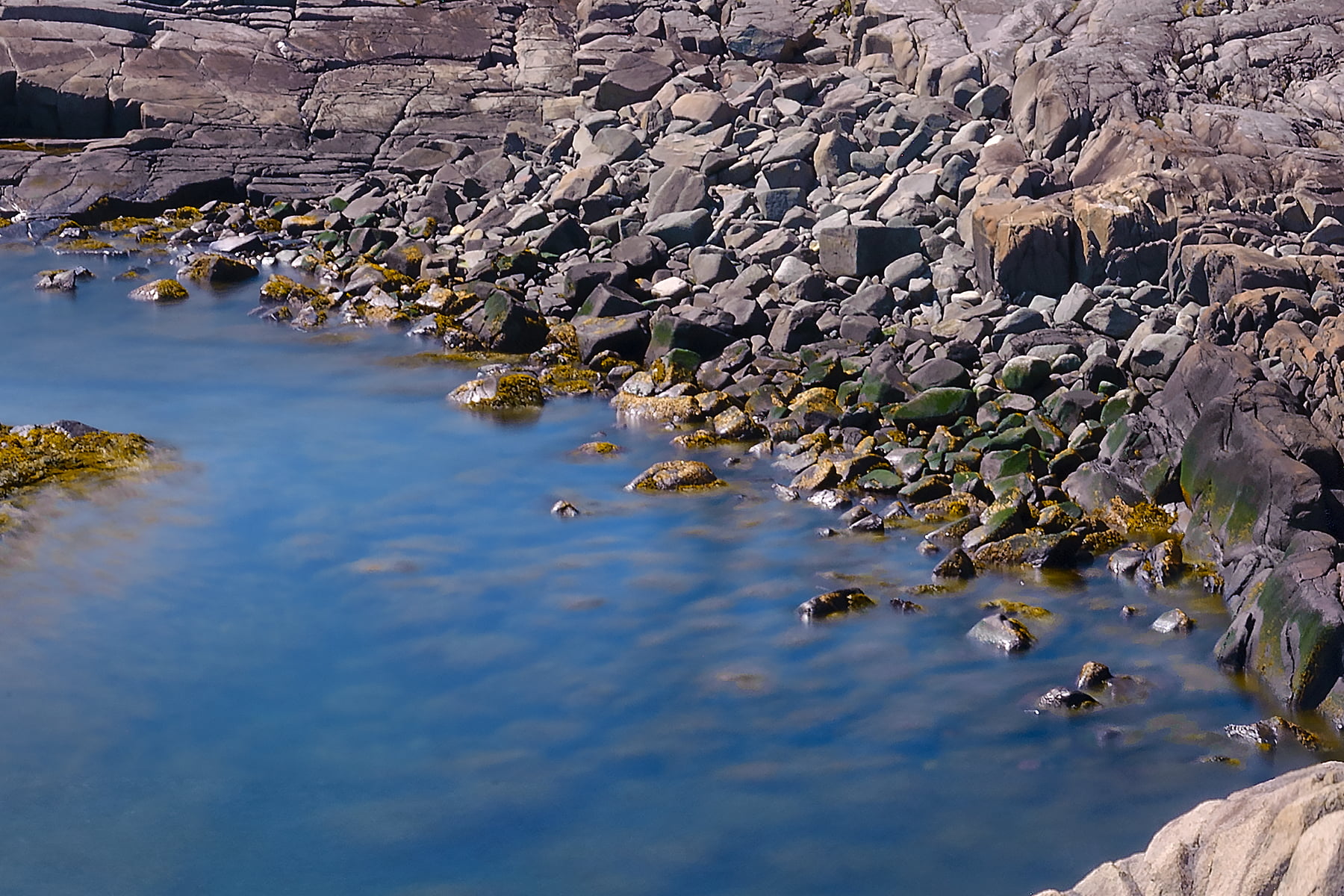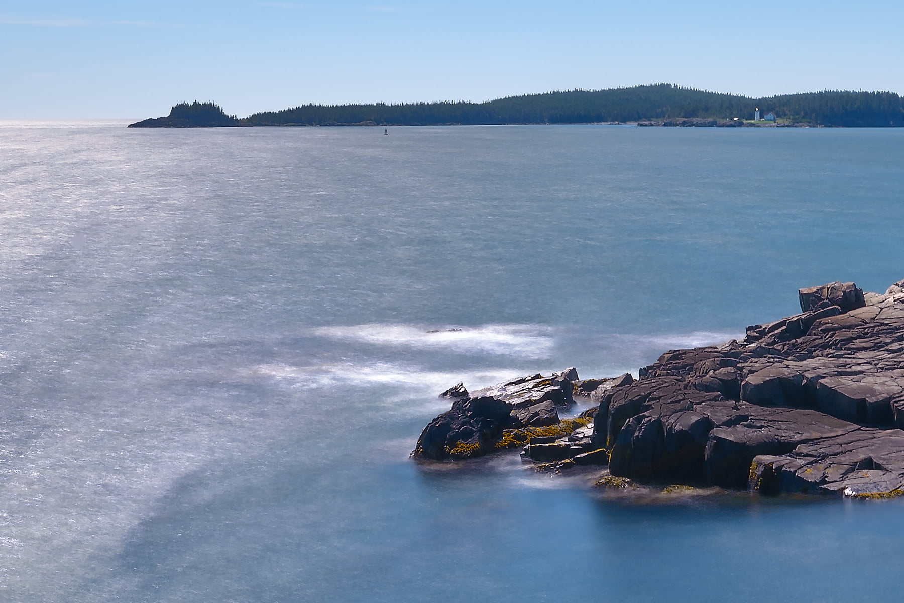 This is a crop of a 360° spherical panorama of Maine’s Bold Coast between Cutler and Lubec on September 6, 2013, 12:52 – 14:08. I used a 10-stop neutral density filter at f/22 to get long 30 second shutter speeds during the day of the ocean’s surf on the rocks. It was incredibly windy so I wasn’t sure if it would come out at all when I shot it. It took an hour and sixteen minutes at 50mm to capture all of the images with a Panoneed robotic head and Promote Control. The Panoneed has gyroscopes and a vibration sensor to only take photos when it is still, and on a Really Right Stuff TVC-34L tripod and leveling base it is very stable and vibration resistant.