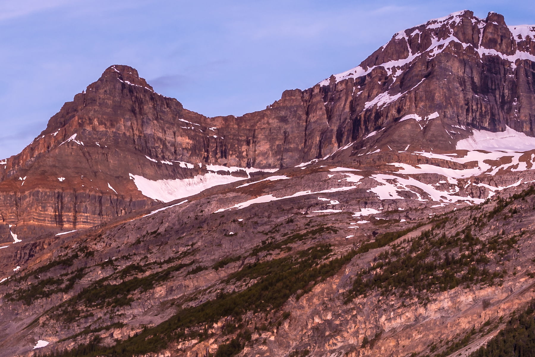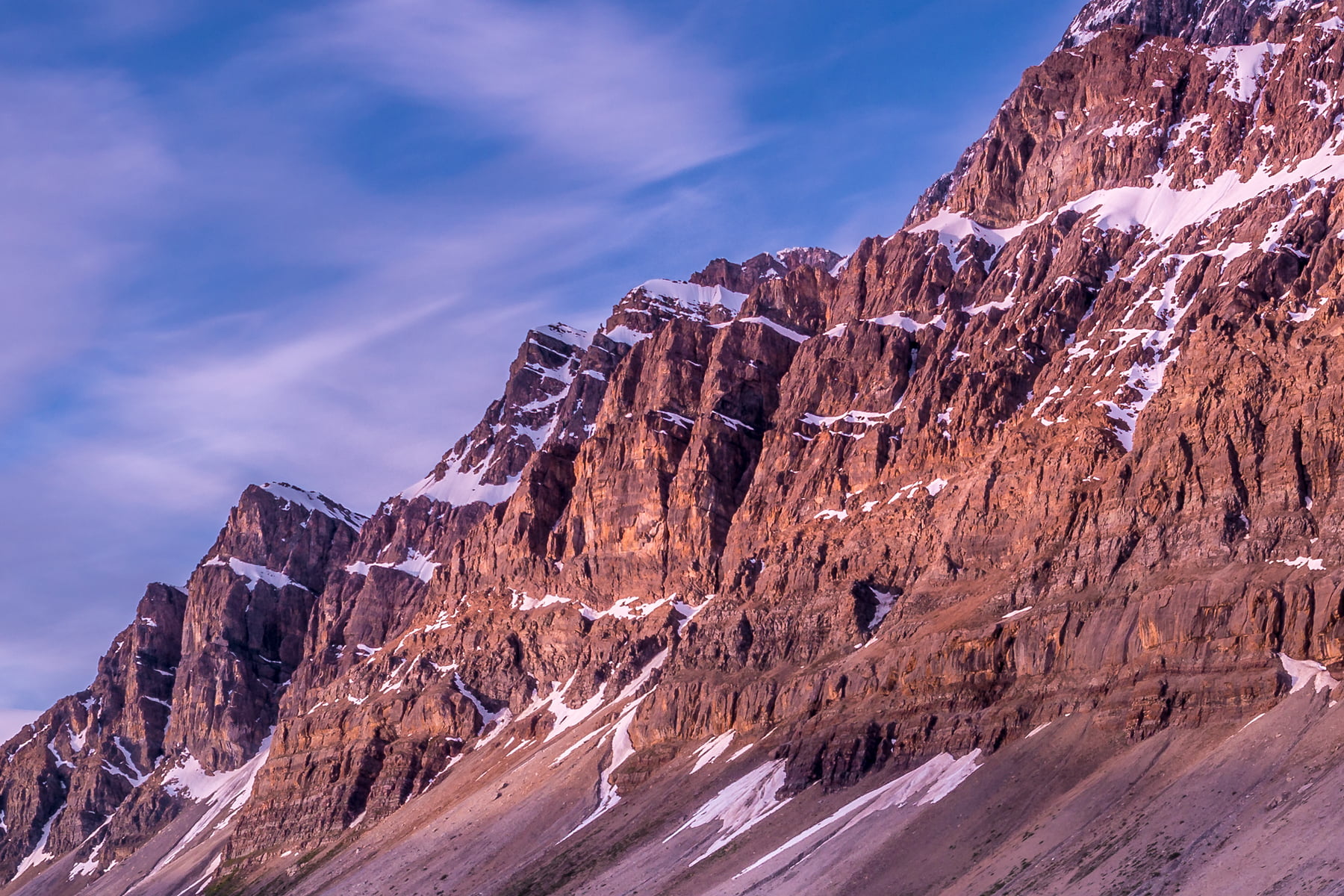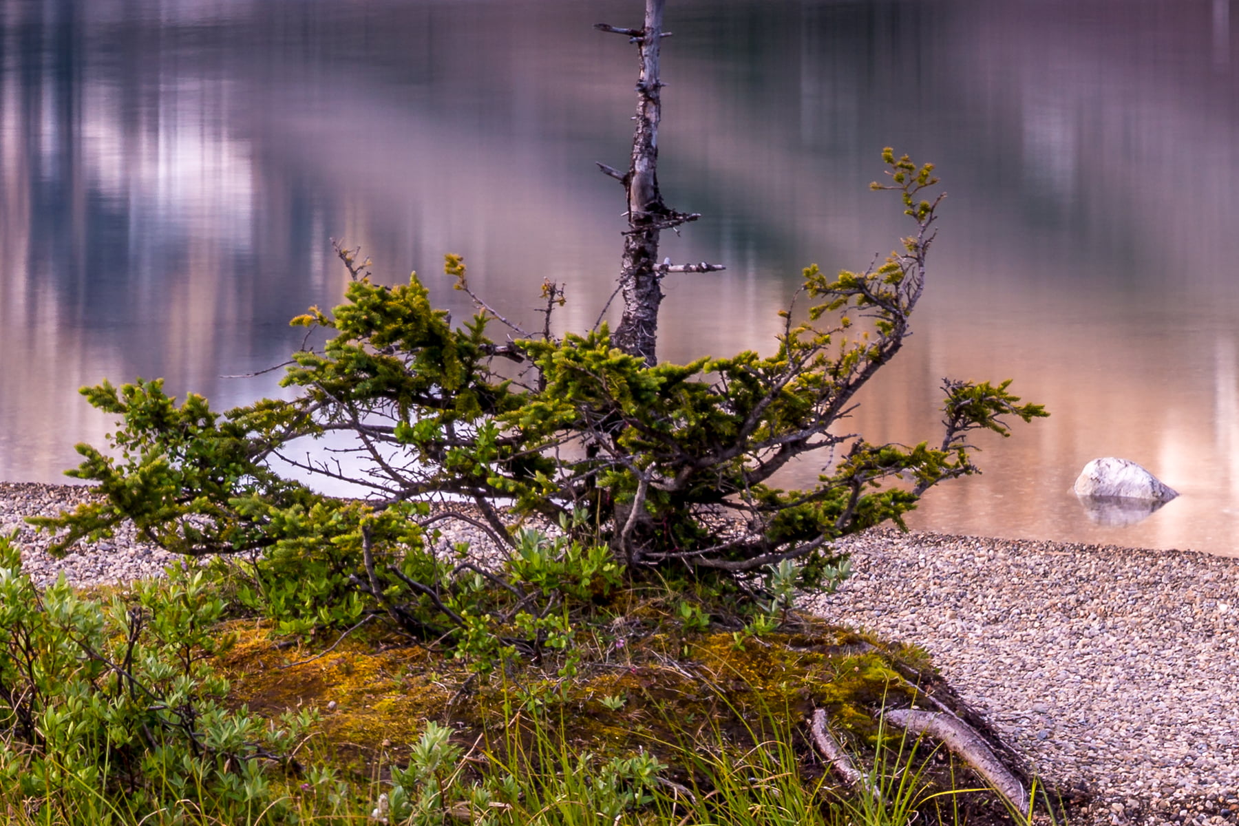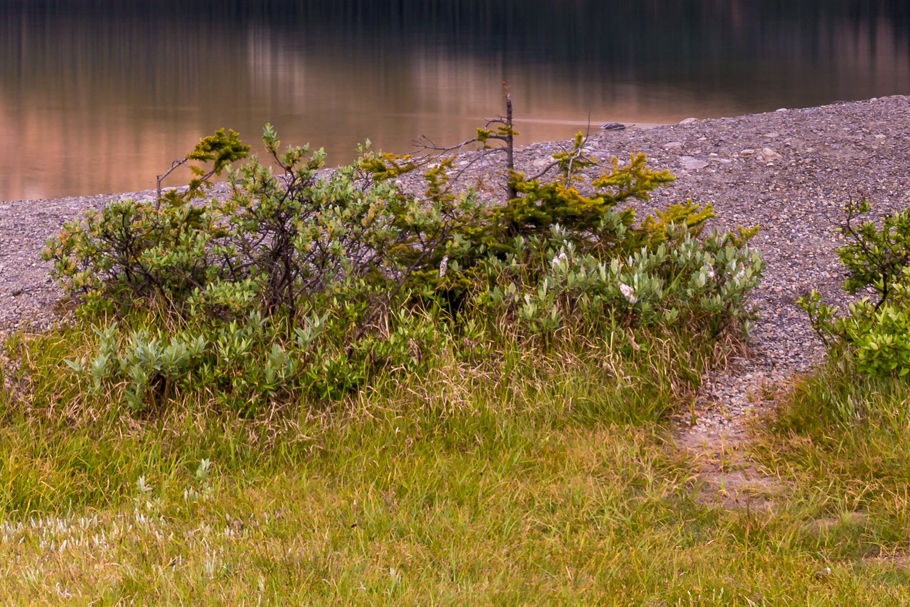 I had been up before dawn in a long wait for the sun to rise and light up the peaks over Bow Lake, which is located in Banff National Park in Alberta. It was cold that morning. Really, it is cold there every morning. At 1920 meters in elevation, summer is very short, and the snow never leaves the surrounding peaks which are hugged by glaciers and icefields. The water of the lake is glacier fed, and is ice cold.