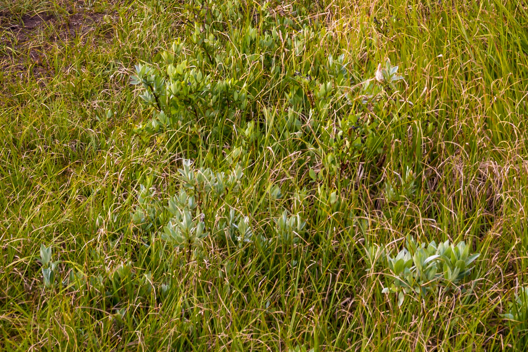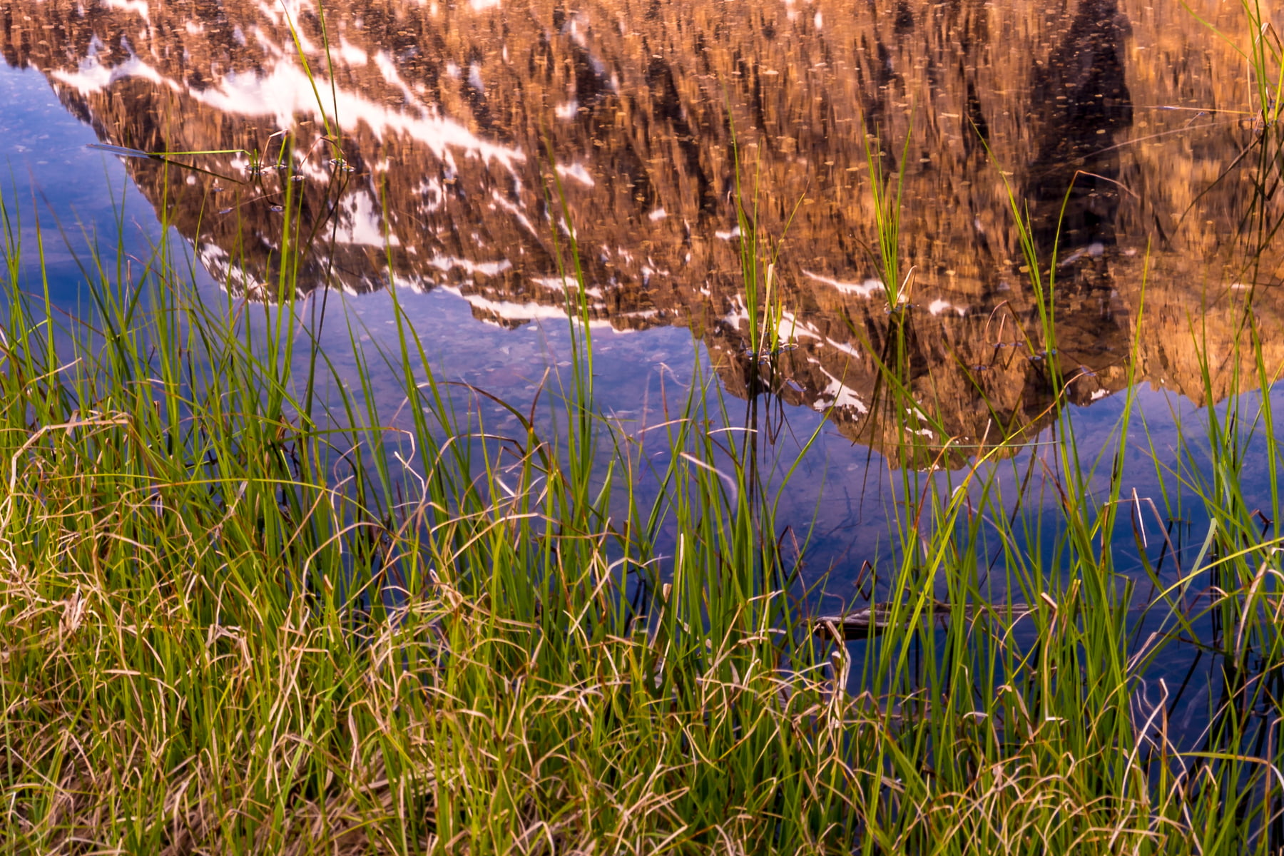 I was waiting for the perfect moment where the sun was hitting the mountains, and the water would be as smooth as glass which would provide reflections off the surface. This morning it was not to be. The sun came up, but it brought a strong breeze with it which rippled the surface of the water. This would ruin the shot I was trying to get, so I searched for still water and found a puddle surrounded by grass that was beside the beach that was not affected by the wind.