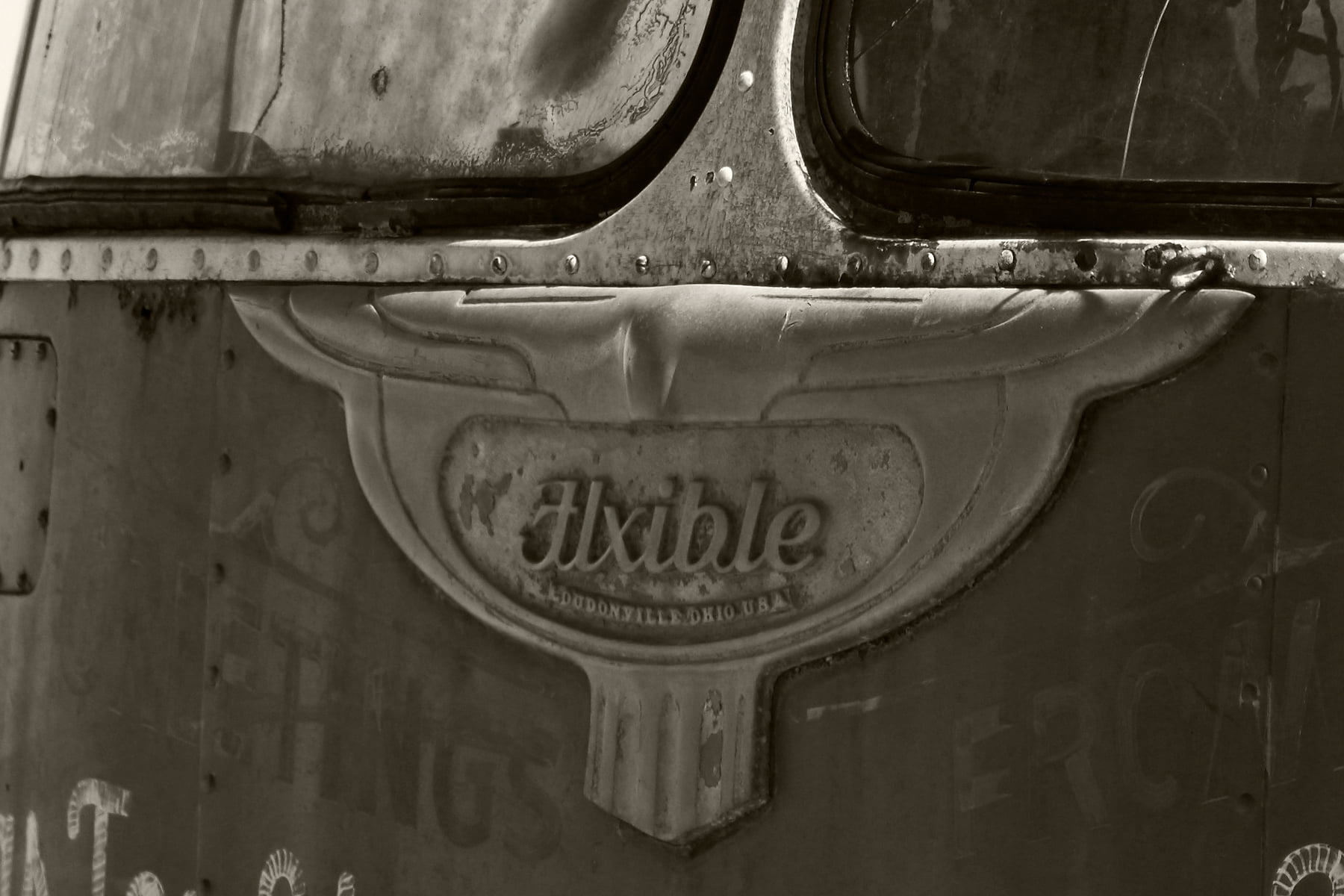 The bus featured here is a Flxible (pronounced Flexible) Clipper from the 1950's made by the Flxible Co from Loudonville, Ohio. The company originally manufactured motorcycle sidecars, hearses and ambulances. This model of bus has a huge following with many having been restored or converted into camper vans.