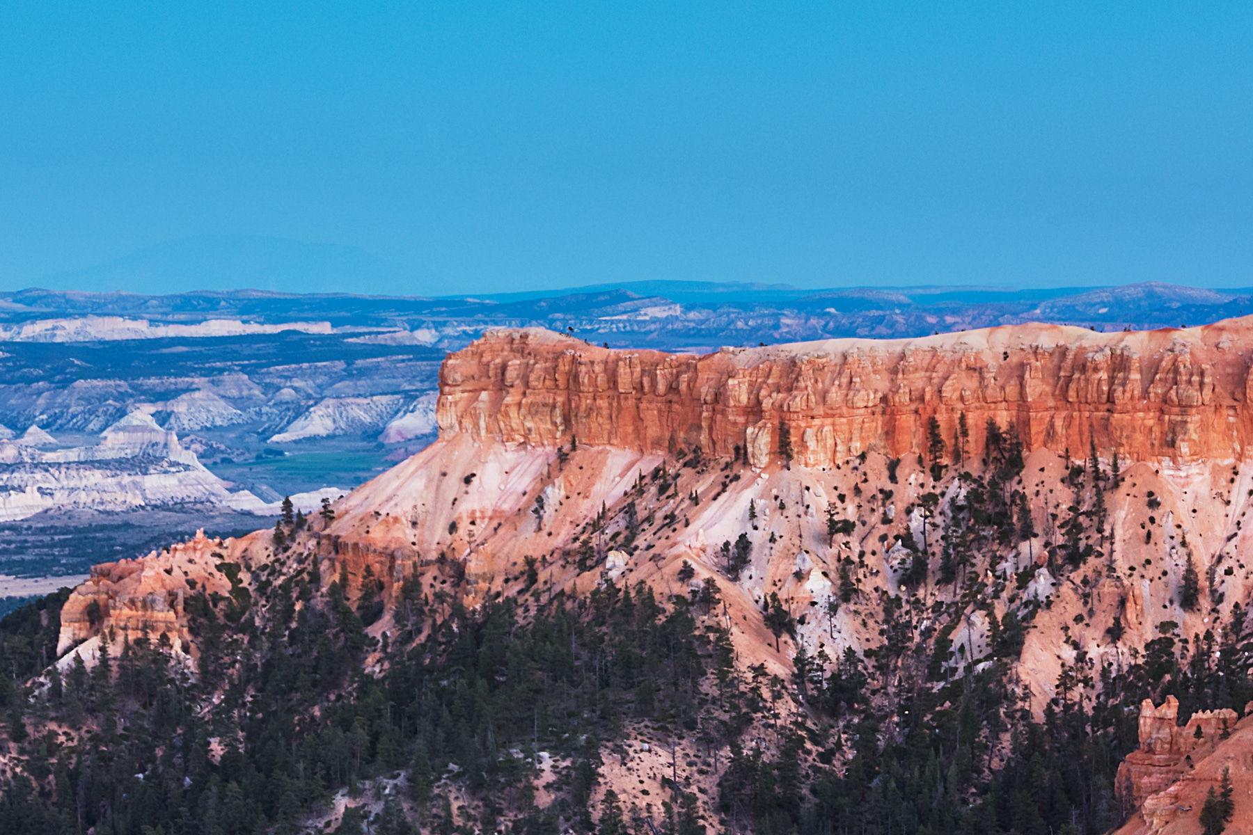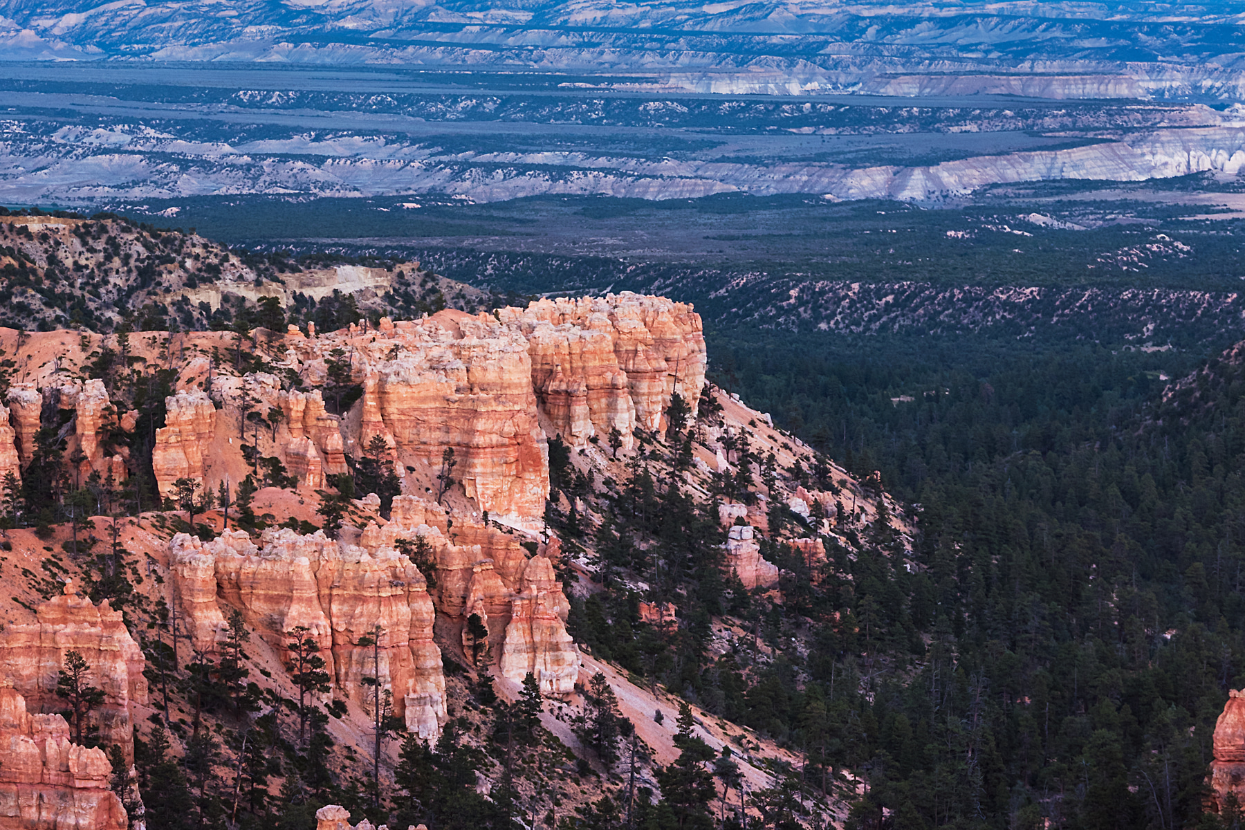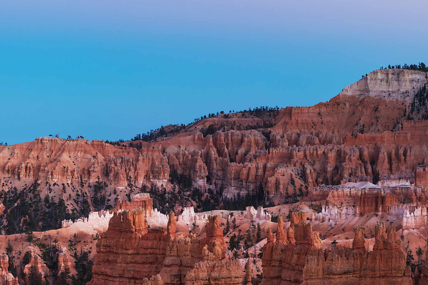 Most of the visitors had left the park by the time the moon rose up over Bryce Canyon. Having arrived too late in the day to get the best light on this masterpiece, I was very pleased to capture this brief moment of beauty from the mix of the setting sun and light of the moon. It was very quickly followed by darkness and cold temperatures, but it was a memorable moment to be out there nearly alone to witness it.