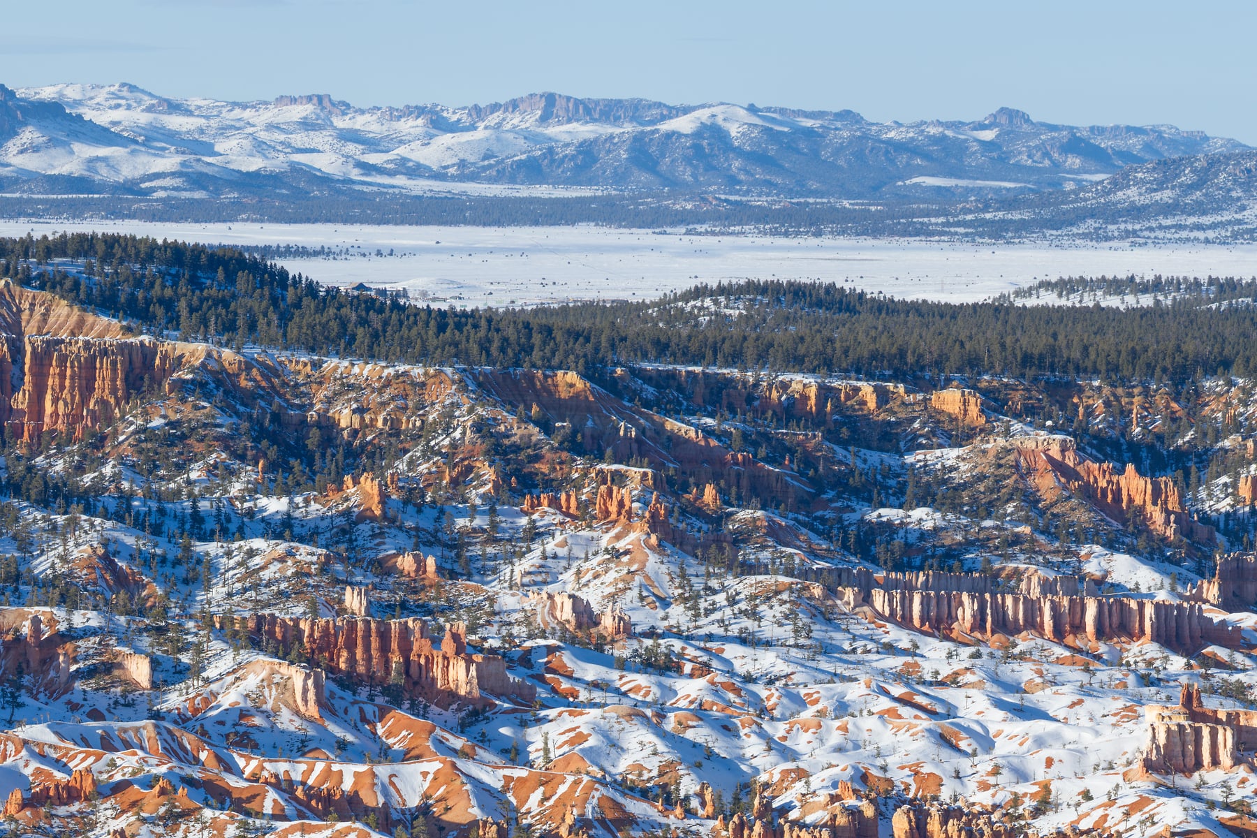 The view of Bryce Canyon from Bryce Point in the evening can be stunning. You can stare at it for hours watching the light really make the texture of the hoo-doos pop with the evening crosslight. Their orange color really comes alive and when you add in snow its just that more amazing.