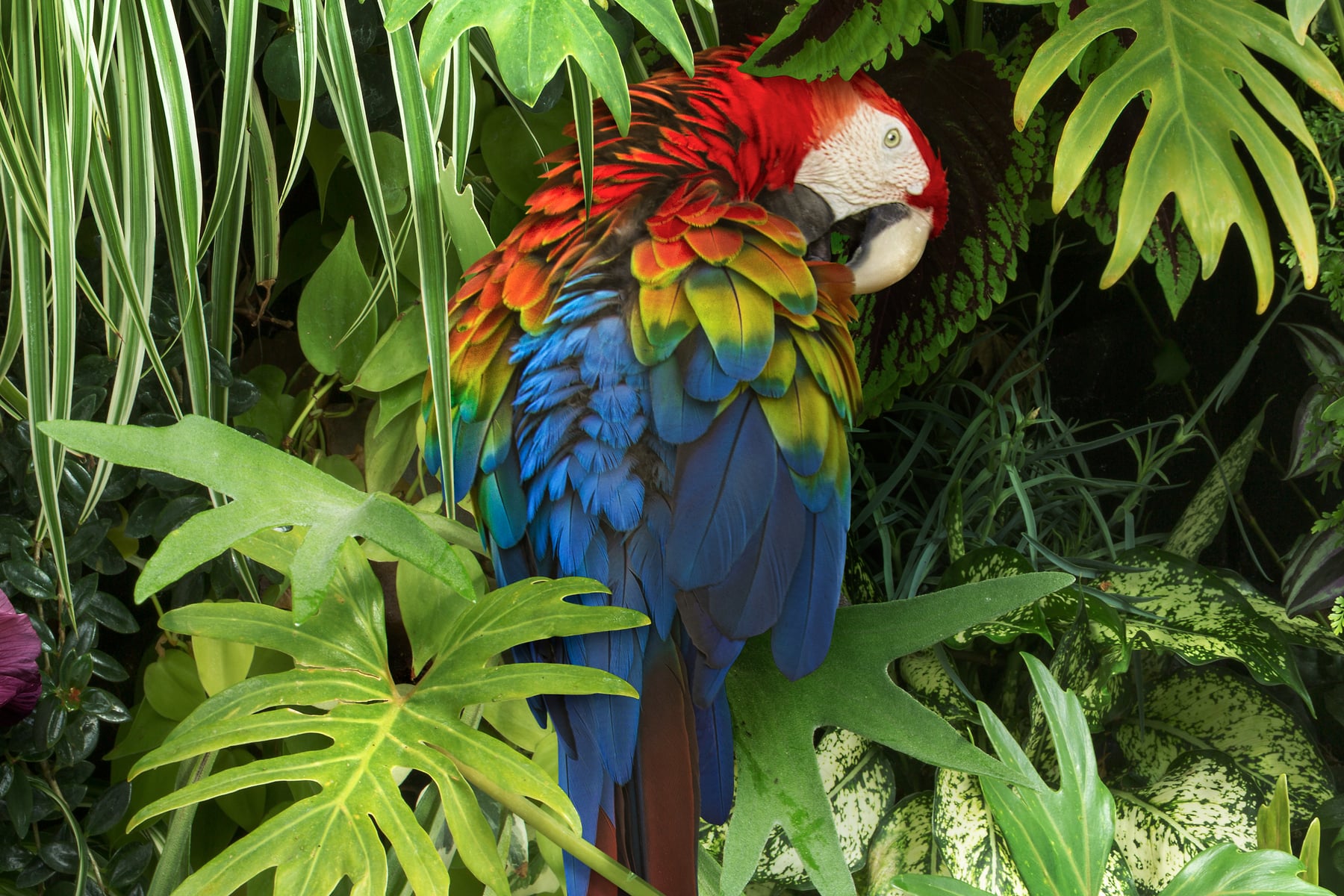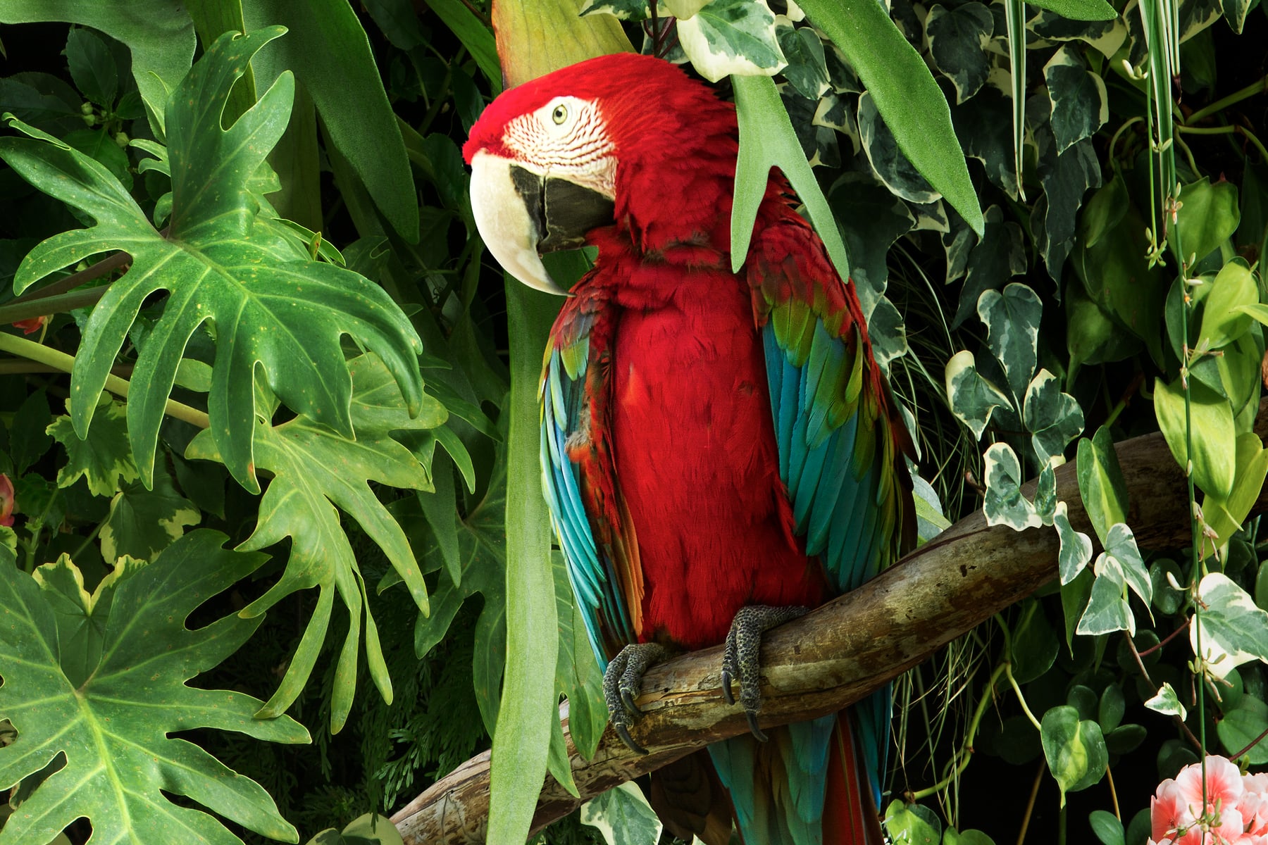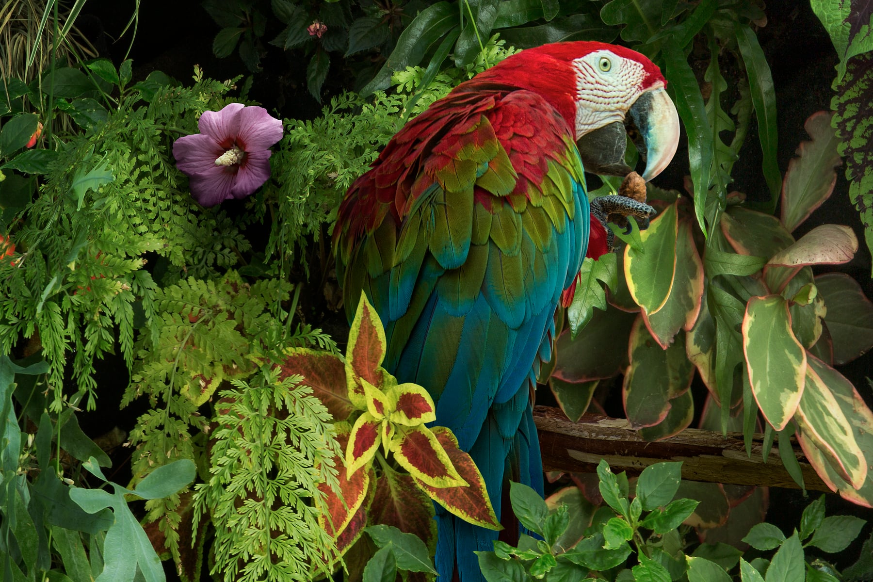 To create this image I photographed all of the imagery at a few botanical gardens, horticultural centers, public parks, and aviaries. Then I use a complex process of digital imaging in Adobe Photoshop to composite the imagery together. The final image is actually made up of more than 50 photographs meticulously pieced together. This process required a lot of effort building up the final seamless image, figuring out the lighting, shadows, color, and other effects to make it look realistic. Each image is carefully planned out and created as an intricately layered construction, which gives it such a hyper-real, illustrative quality.
