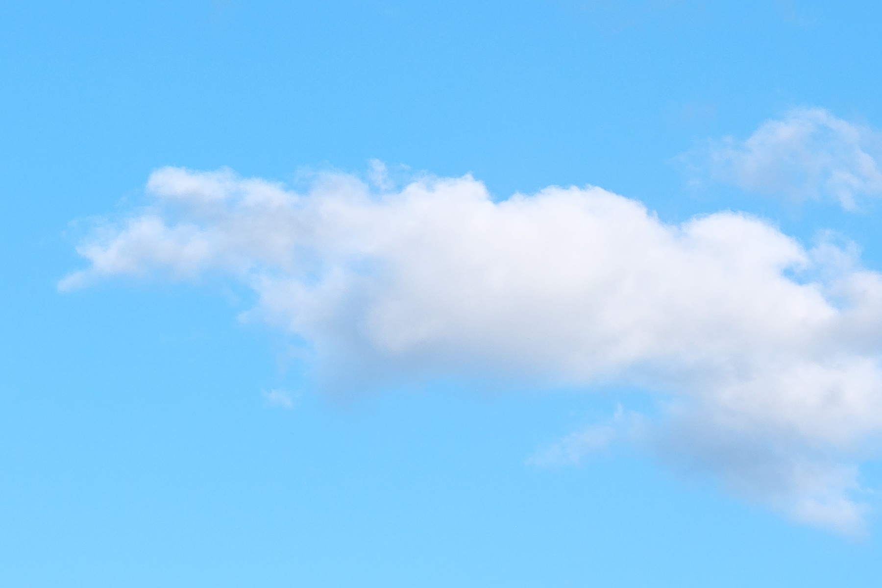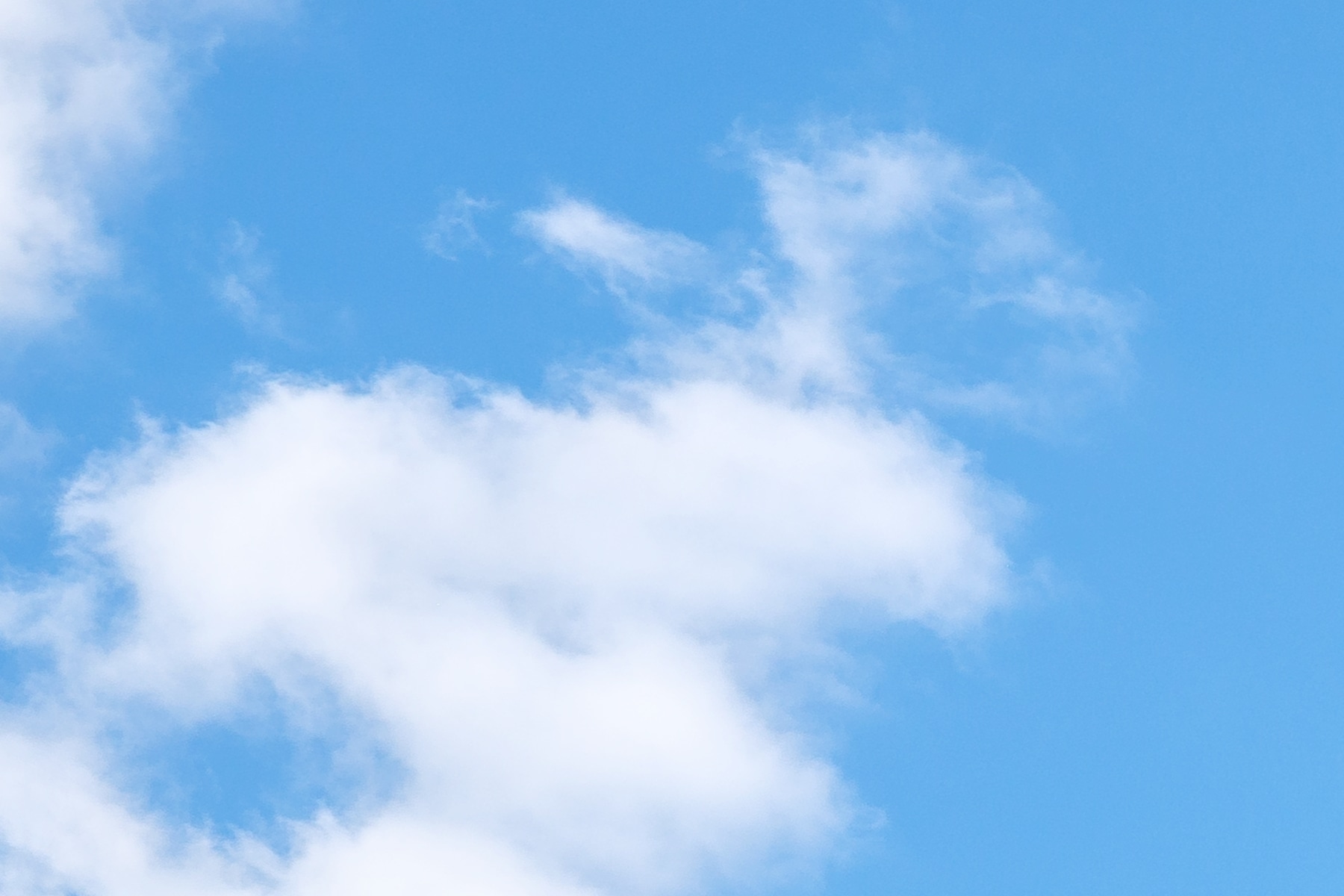 This panoramic image presents a pristine blue sky adorned with scattered, fluffy cumulus clouds, creating a tranquil and uplifting scene. The clouds appear soft and weightless, floating gracefully across the vibrant azure backdrop. The clarity of the atmosphere and the minimalistic composition enhance the sense of peace and vastness, offering viewers a moment of calm and inspiration.