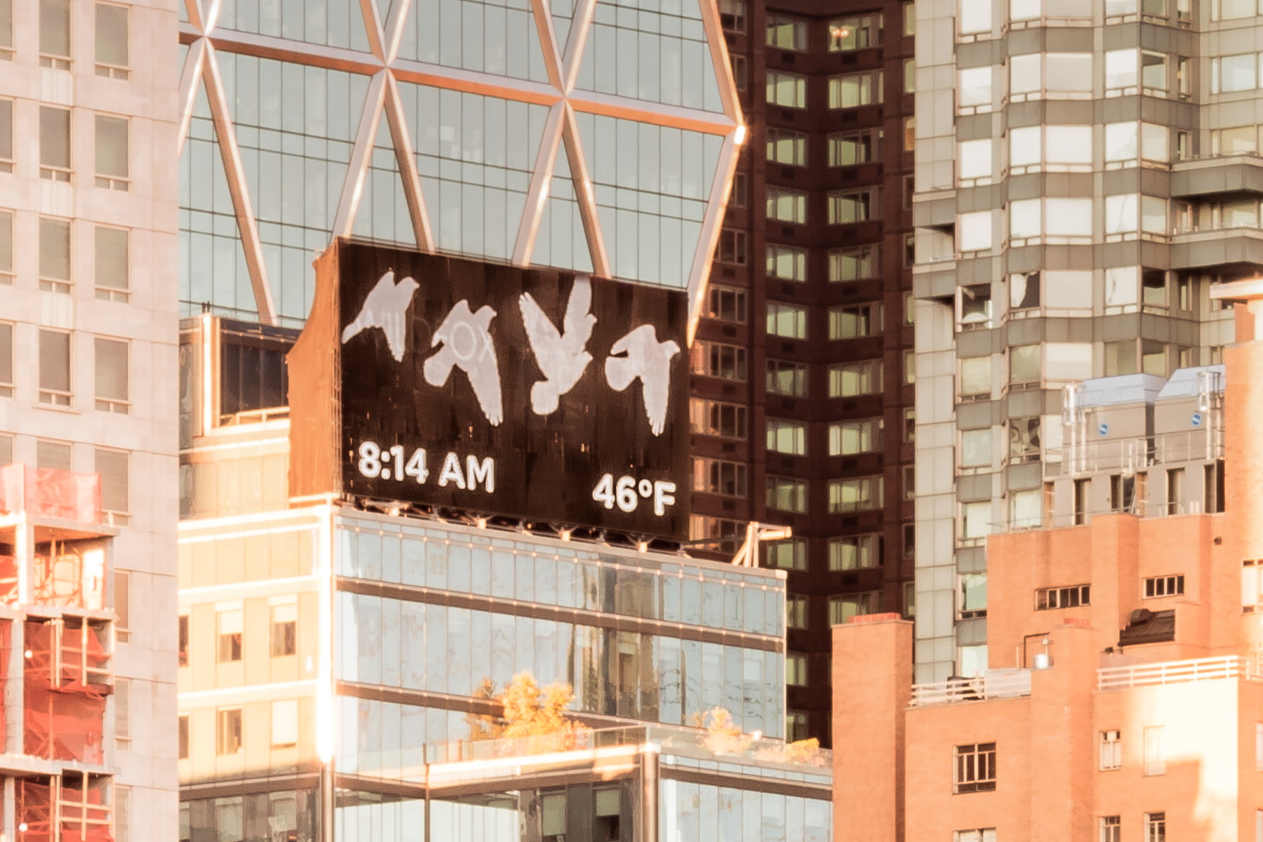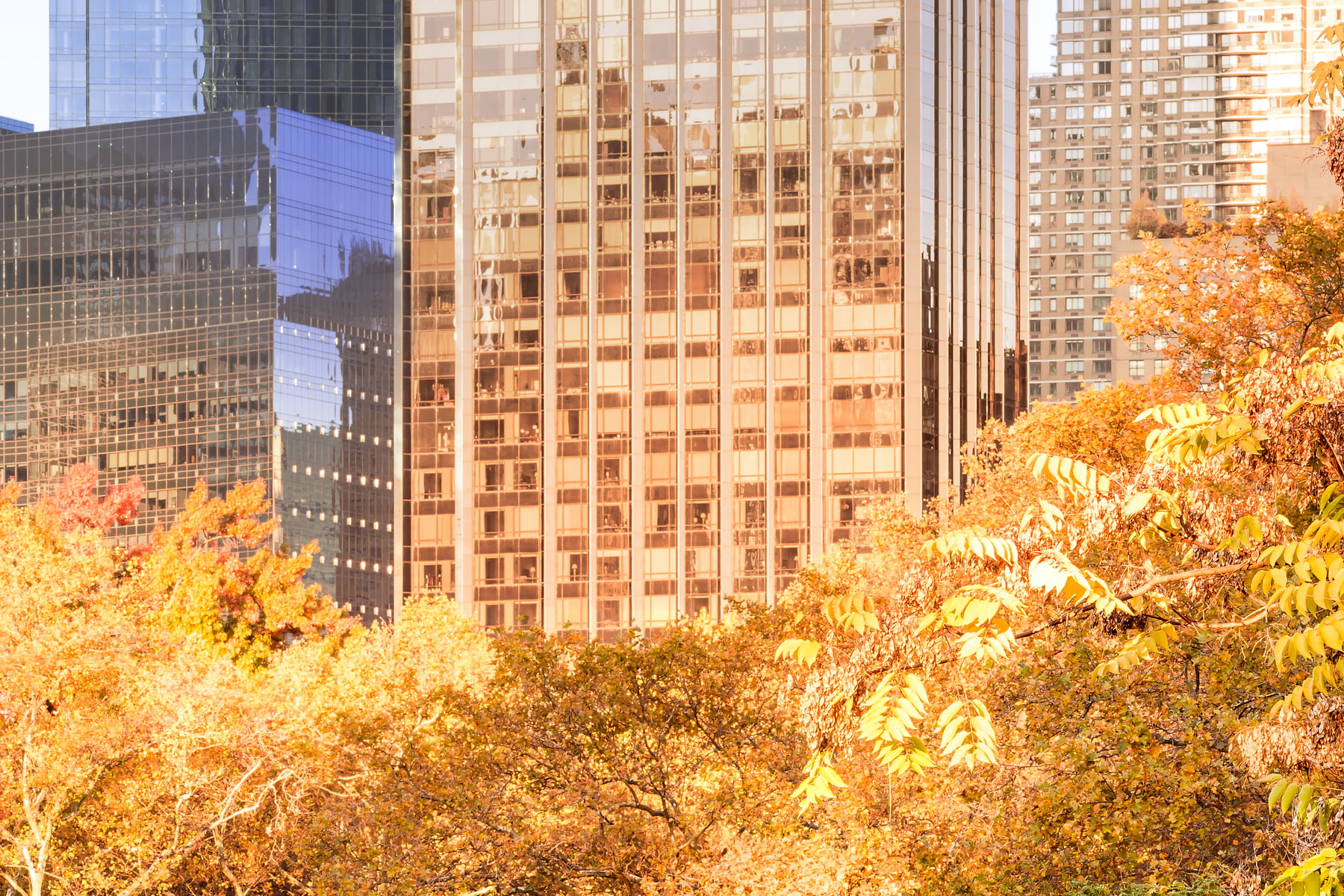 My favorite aspect of this photo, however, is the incredible number of disparate and diverse scenes that exist for the viewer to explore, thanks to the photo's exceptional resolution: a trio of flagpoles are nestled in the woods, a winding path weaves its way through an arched tunnel, a digital billboard reads out the time and temperature beneath a scene of flying birds, a small construction ladder rests precariously on a ledge 700 feet in the air atop 220 Central Park, a lone orange leaf clings onto an otherwise leafless branch, a chimney on the famous Hampshire House billows a plume of steam, a close-up of Cat Rock's texture looks like a lunar landscape, a reflection of the colored foliage reflects off a shimmering Columbus Circle building, a luxurious chandelier fills a window on the 90-story One57 tower... there's no shortage of life and scenery to explore in this record-setting photo.