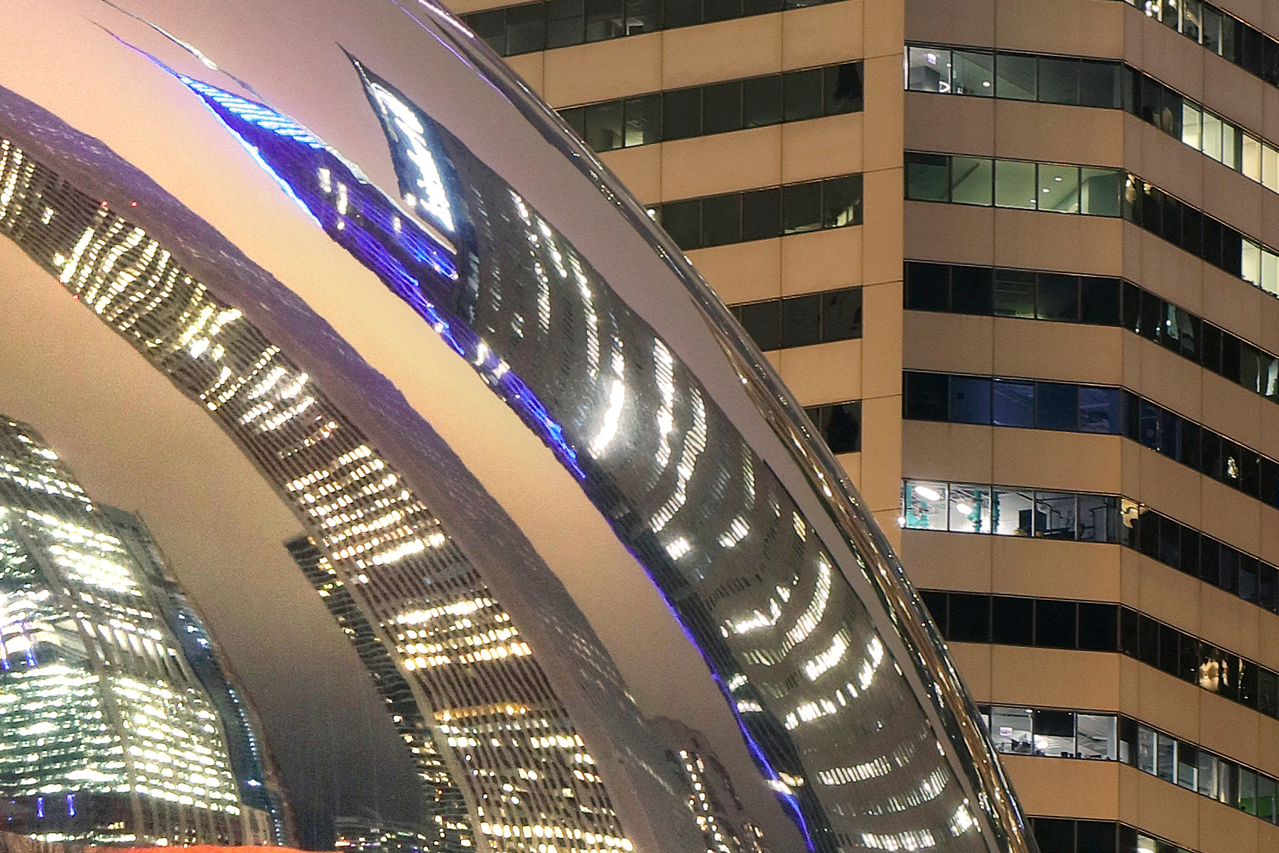 This is actually a sculpture by Sir Anish Kapoor entitled Cloud Gate, however, to me it looks like a coffee bean. The sculpture stands in Millennium Park and is extremely popular with locals and tourists alike. The way that the city skyline distorts in the reflection makes for particularly interesting photography.