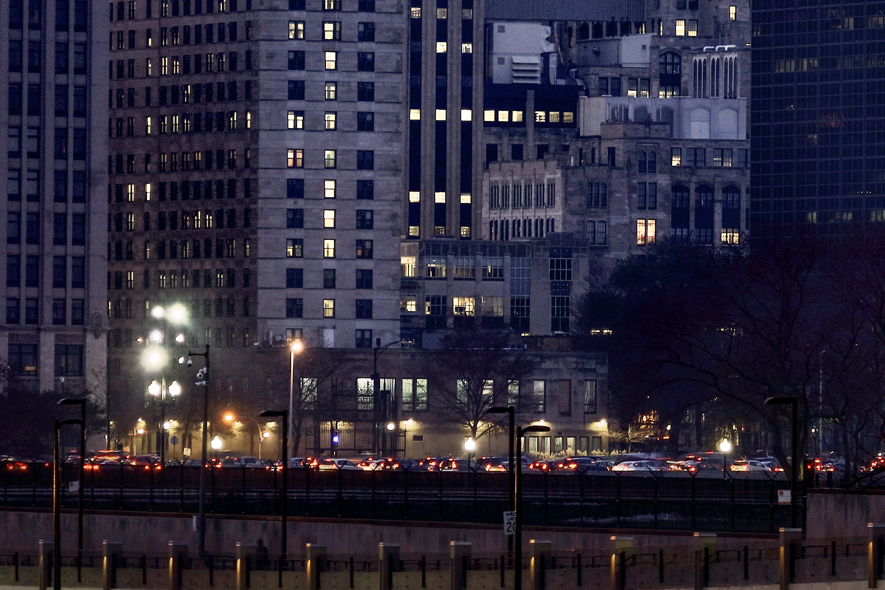 Taken from a high vantage point at Navy Pier (which I was eventually moved on from by security), this image captures a gorgeous sundown behind the Chicago skyline. The reflecting lights of the city in the water add a final touch to a lovely scene of the city.