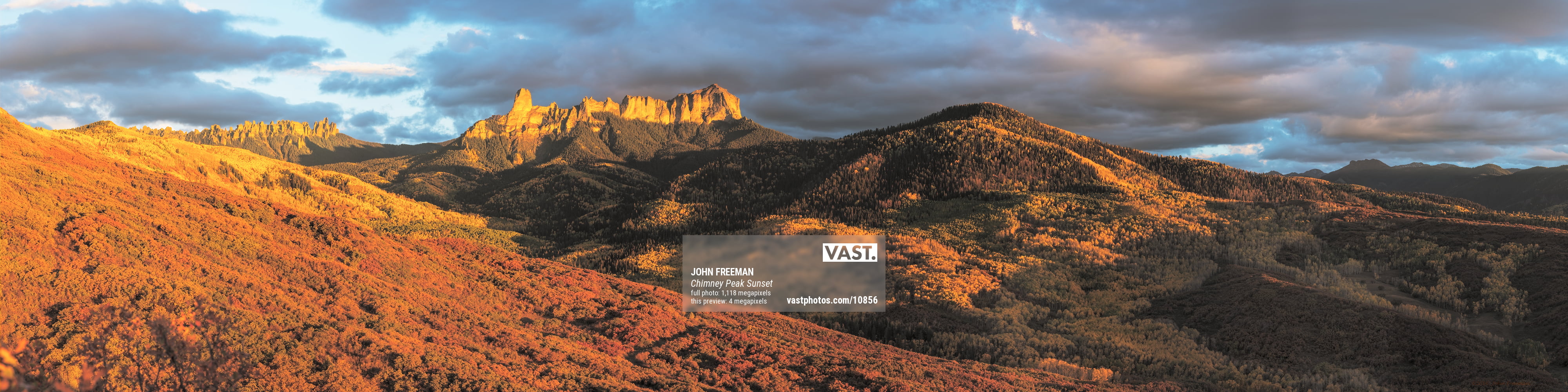 We set up our cameras and waited, hoping that as the sun set there would be good light at sunset. Right on que, as the sun dropped below the clouds, Chimney Peak and Court House Peak, and the hillsides covered with Aspen and Scrub Oak in the peak of their fall colors exploded with color in the late afternoon light.