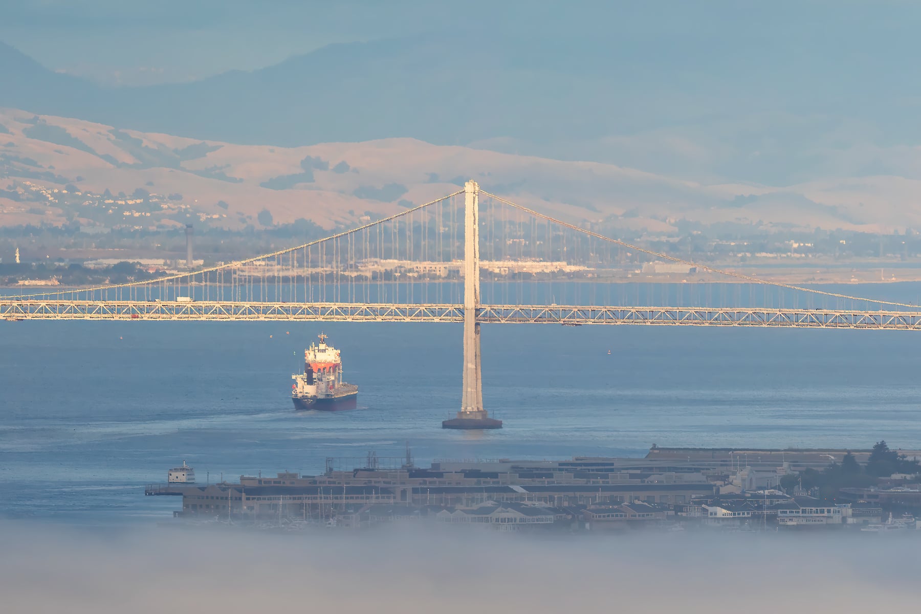 The San Francisco skyline from the Marin side is a classic-looking view, but it's surprisingly difficult to align the perfect conditions for a powerful image. I have photographed in the area dozens (if not hundreds) of times over the last decade, and this is one of the best combinations of high clouds and low fog in my memory.