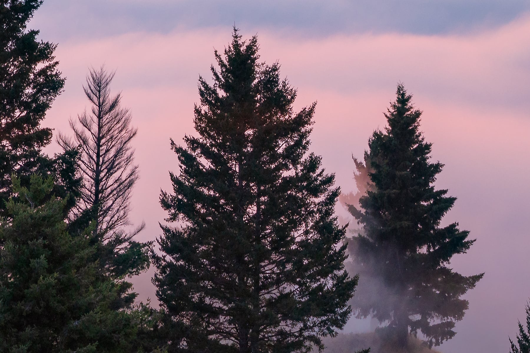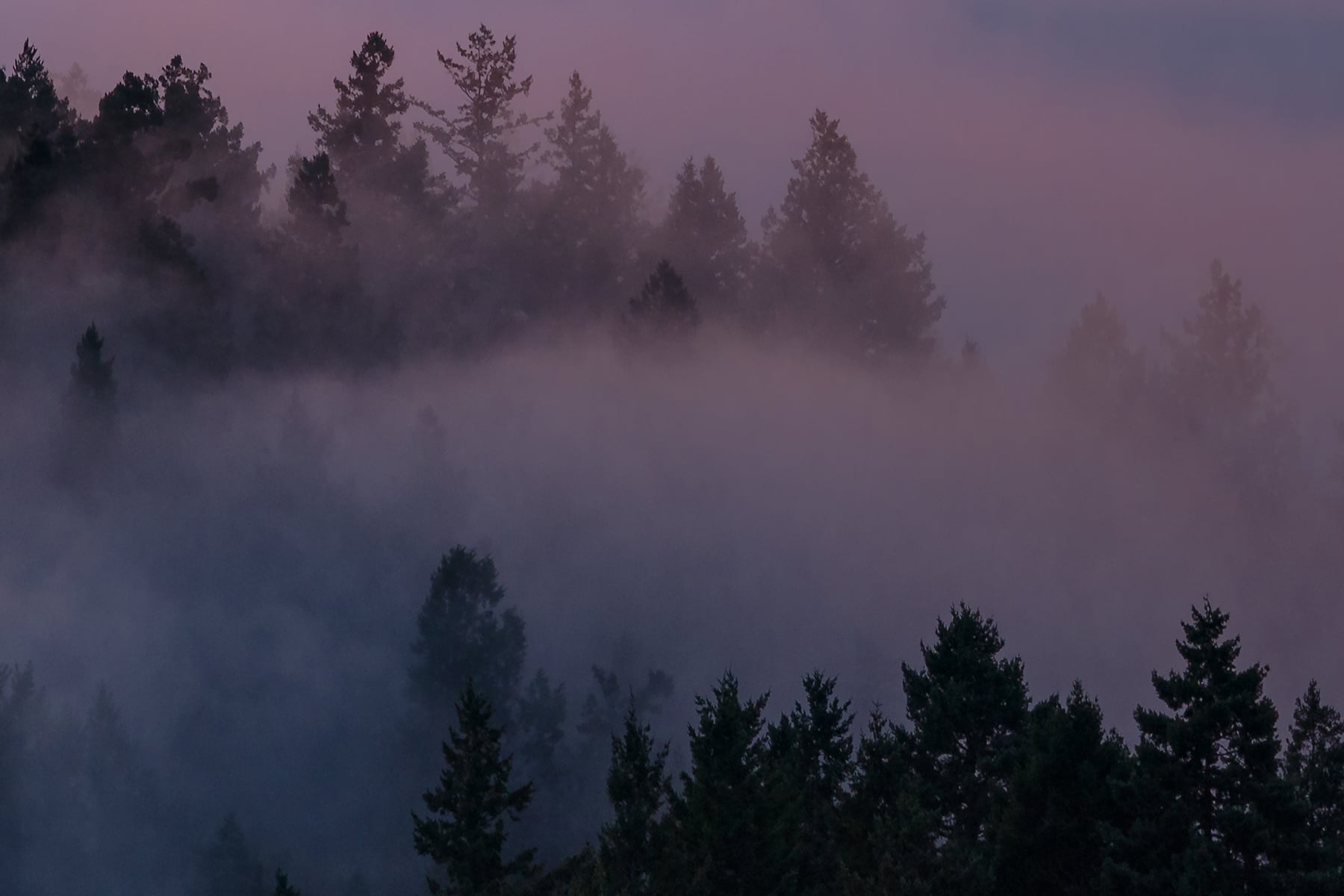 This was one of those "perfect" days, even with a few clouds above. Quite rare to see the fog-and-high-cloud combination in summer around here! I took a couple VAST photos at different times that evening, and this moment with the colorful sky on top of the flowing fog just might have been the most spectacular.