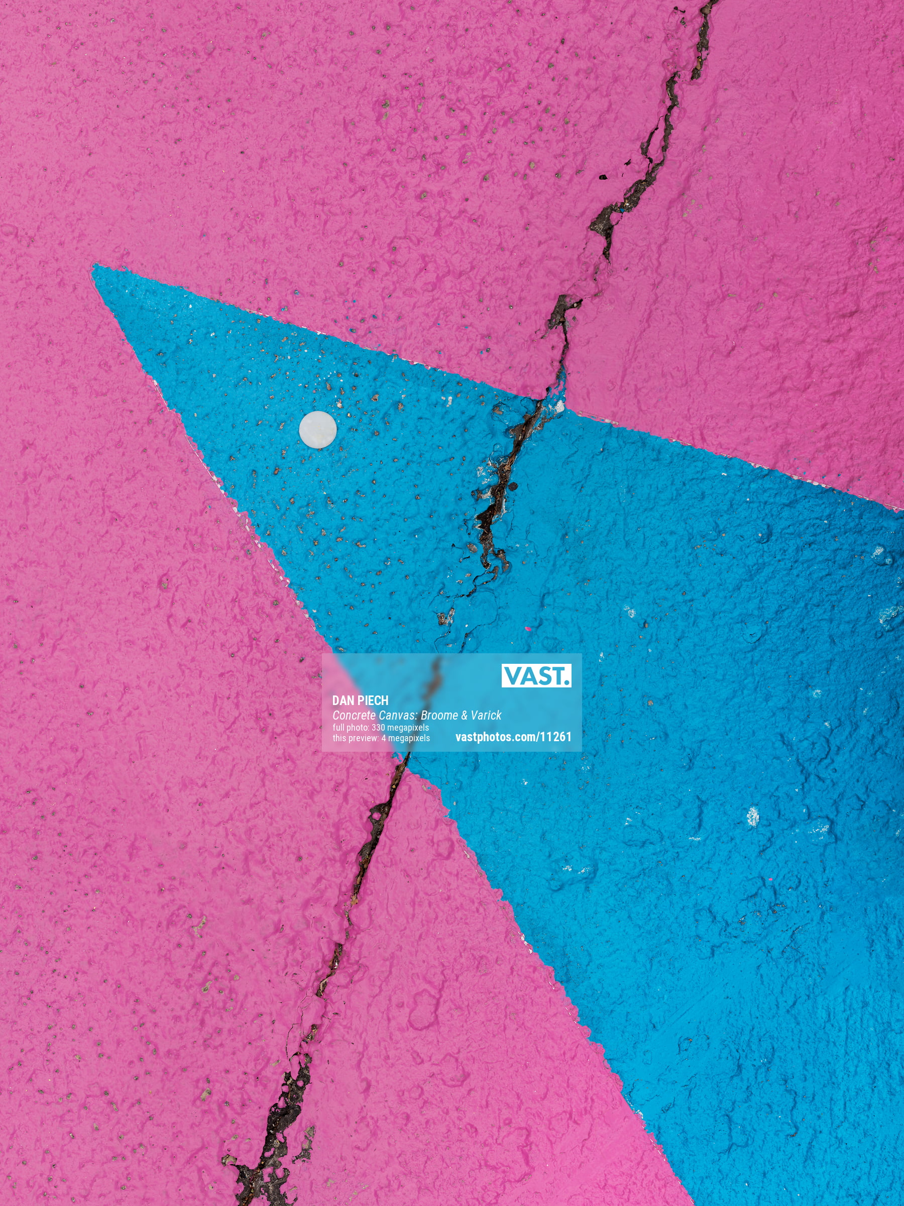 Dan Piech's Concrete Canvas series captures the accidental beauty that serendipitously occurs when the concrete beneath New Yorkers' feet is inadvertently graced by spilled paint, fallen debris, expanding cracks, chemical stains, and other delightful visual elements. An avid runner, Piech has spent over three years traversing every single Manhattan street in search of these overlooked "artworks" that have become part of the fabric of the city.