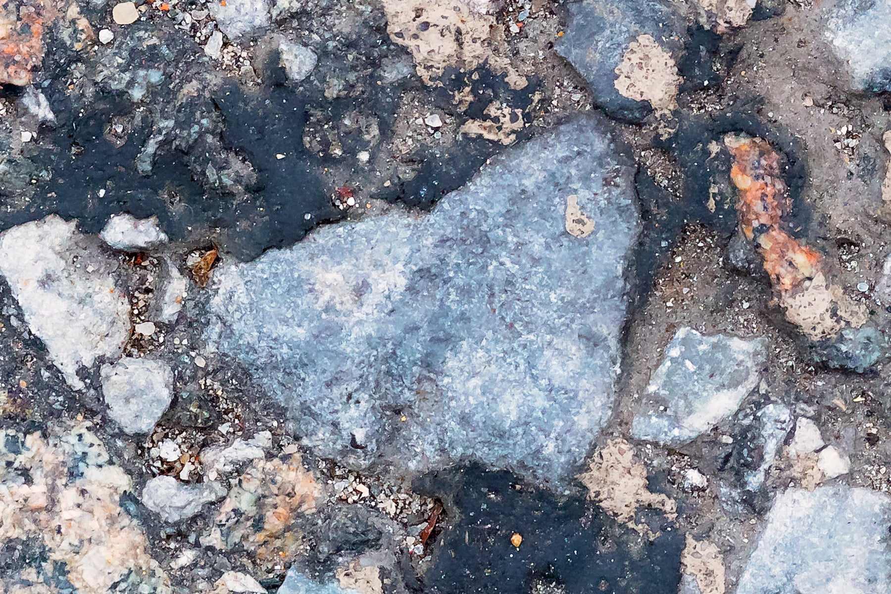 Dan Piech's Concrete Canvas series captures the accidental beauty that serendipitously occurs when the concrete beneath New Yorkers' feet is inadvertently graced by spilled paint, fallen debris, expanding cracks, chemical stains, and other delightful visual elements. An avid runner, Piech has spent over three years traversing every single Manhattan street in search of these overlooked "artworks" that have become part of the fabric of the city.
