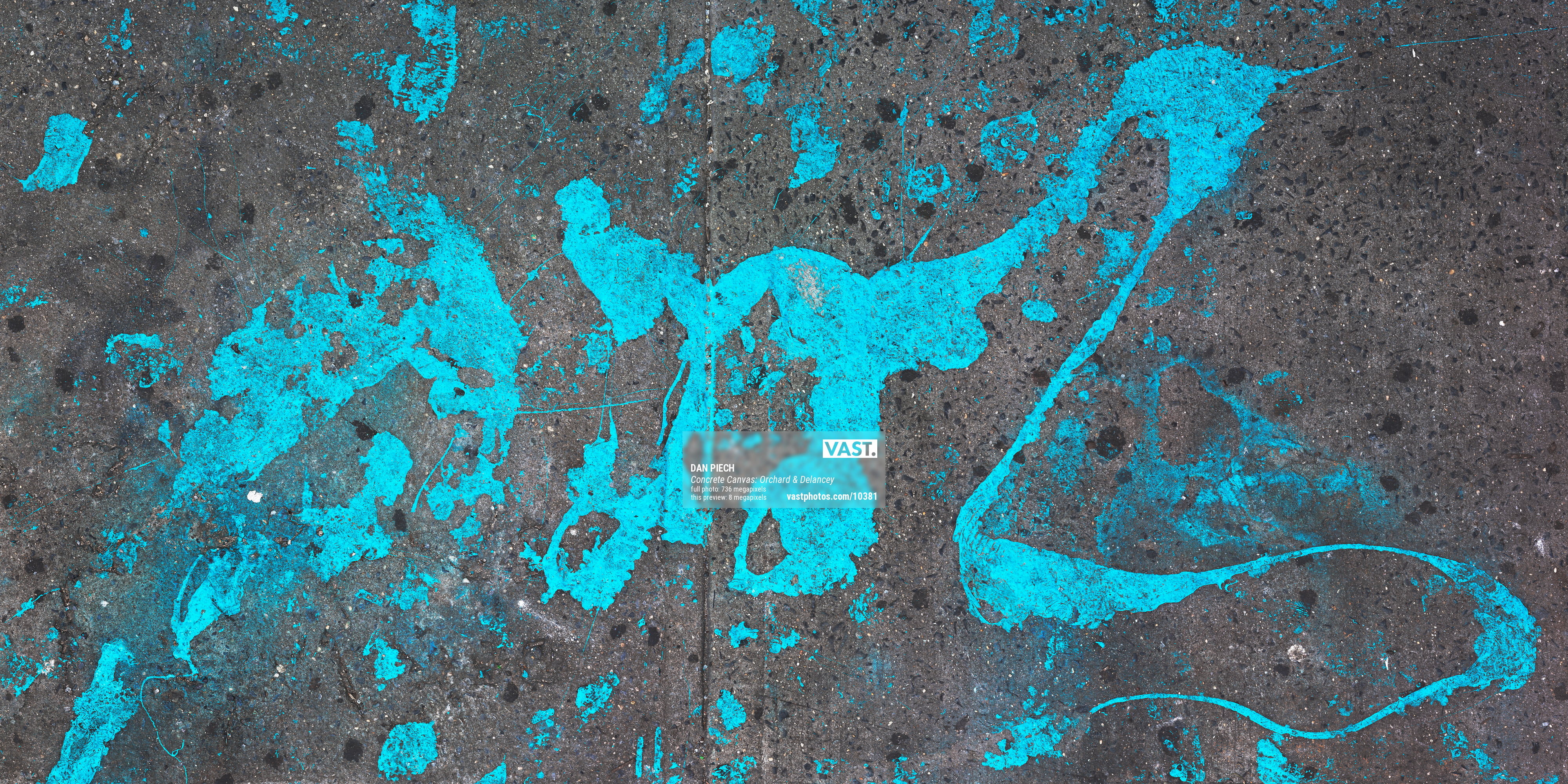 Dan Piech's Concrete Canvas series captures the accidental beauty that serendipitously occurs when the concrete beneath New Yorkers' feet is inadvertently graced by spilled paint, fallen debris, expanding cracks, chemical stains, and other delightful visual elements. An avid runner, Piech has spent over three years traversing every single Manhattan street in search of these overlooked "artworks" that have become part of the fabric of the city.
