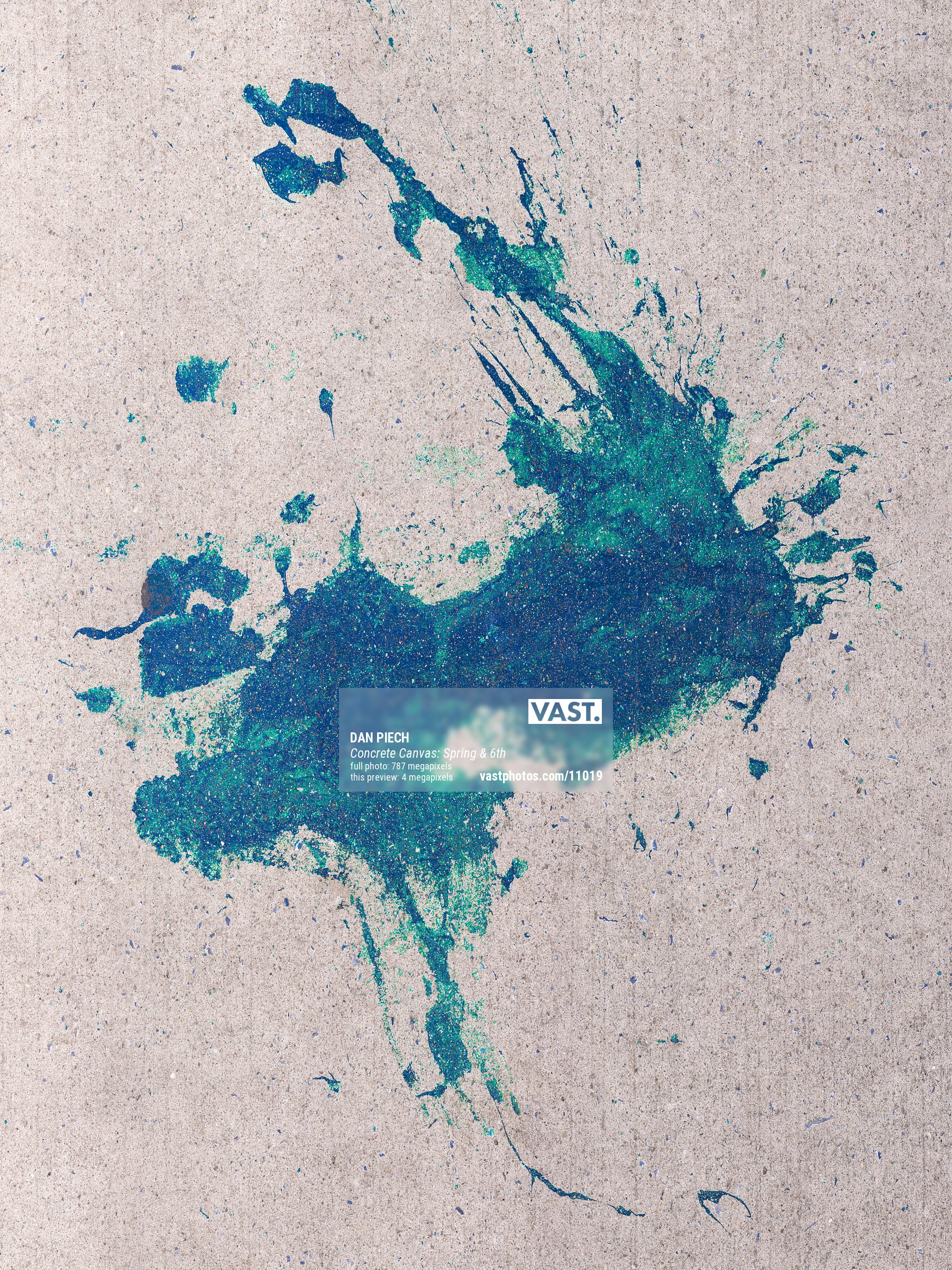 Dan Piech's Concrete Canvas series captures the accidental beauty that serendipitously occurs when the concrete beneath New Yorkers' feet is inadvertently graced by spilled paint, fallen debris, expanding cracks, chemical stains, and other delightful visual elements. An avid runner, Piech has spent over three years traversing every single Manhattan street in search of these overlooked "artworks" that have become part of the fabric of the city.