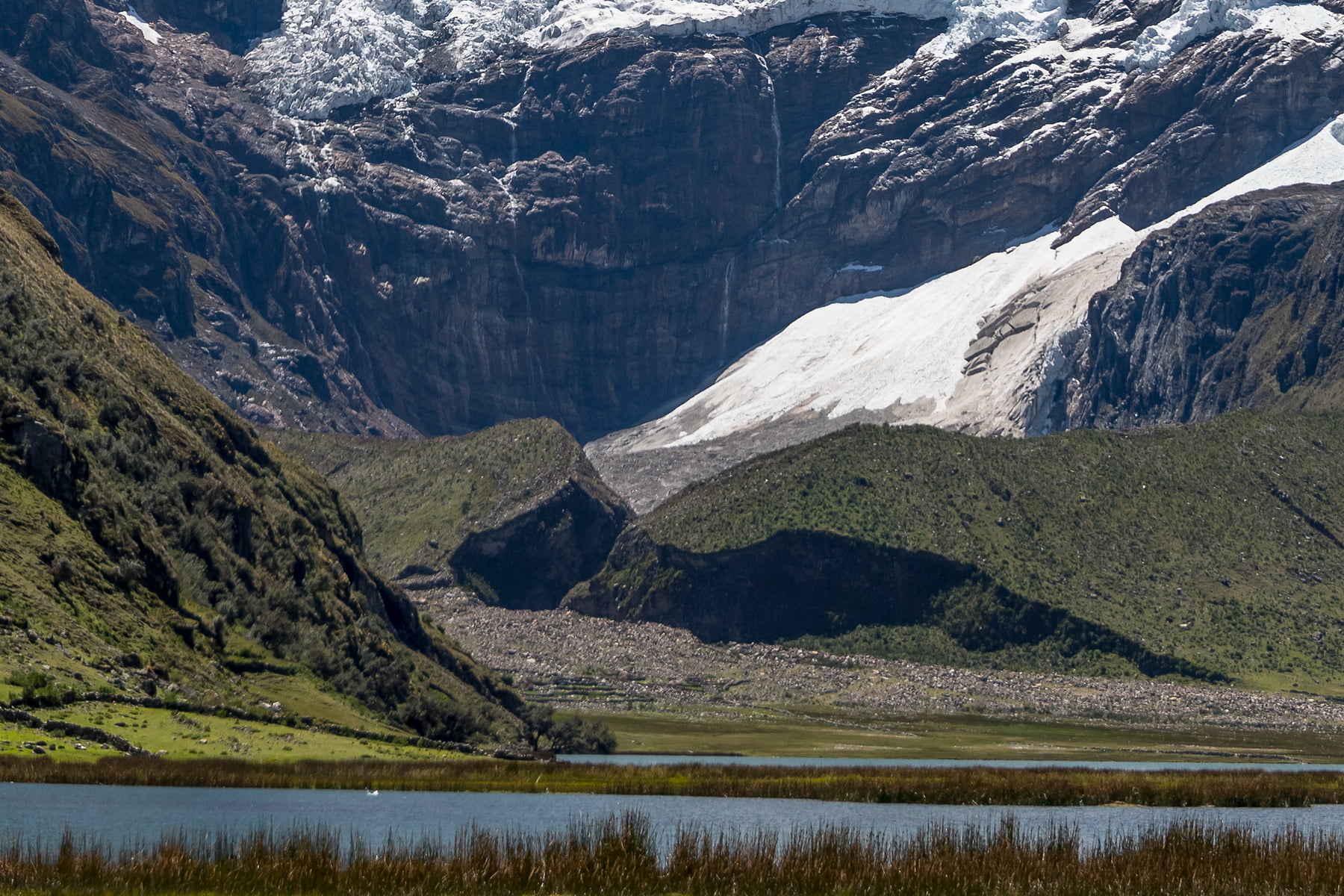 Flat enough for lawn bowling, and green enough for cattle grazing, the meadow at the head of Lake Jauacocha in the Cordillera Huayhuash region of Peru is the ultimate place to pitch a tent, lay back and watch the weather change on the towering summits above. One of the key campsites on the famous Cordillera Huayhuash trek, this location is often a sea of tents, as trekkers from around the world flock to see this otherworldly landscape first hand.