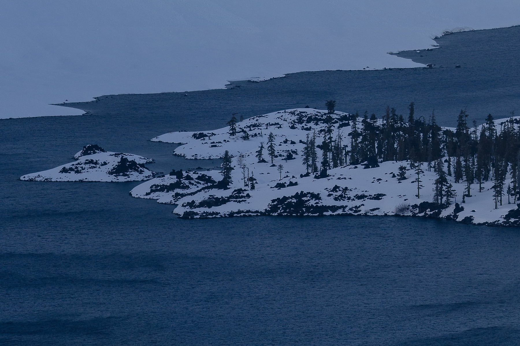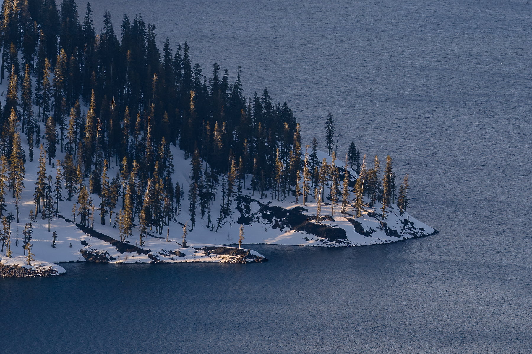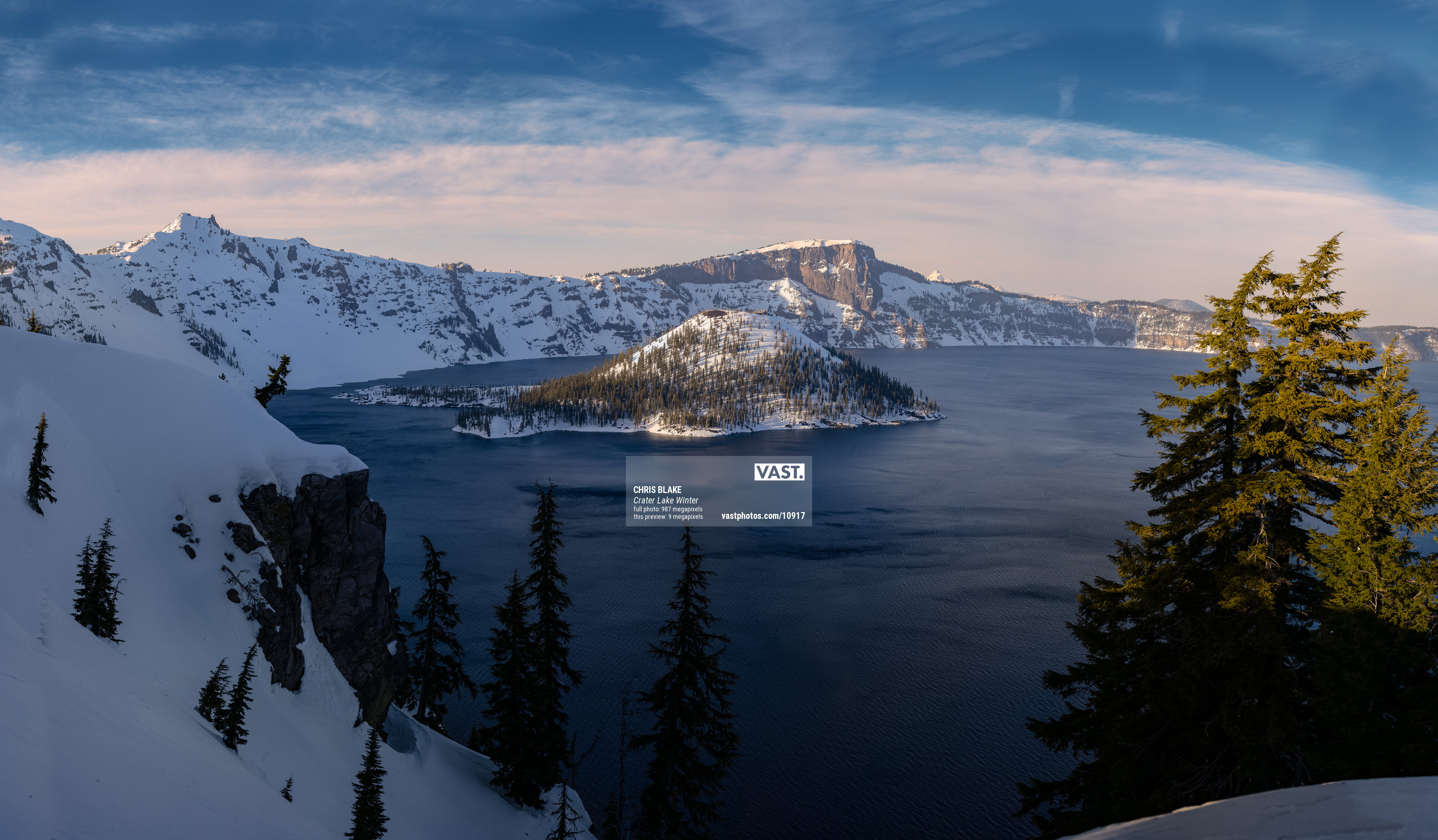 The view of the crater with snow surrounding it at the last light of day is something very special. This VAST image comprises over 192 individual photographs allowing for stunning detail of the lake and in particular Wizard Island.