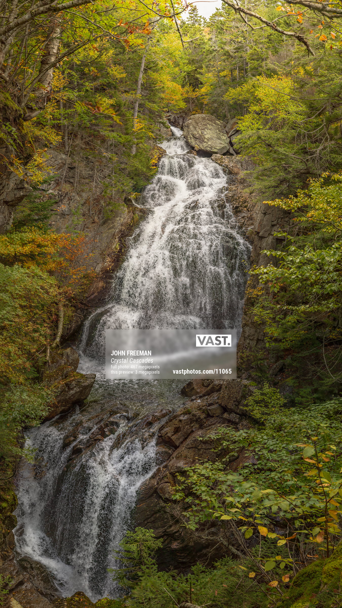 The Crystal Cascade is situated along the Tuckerman Ravine Trail. The trail begans from the AMC Pinkham Notch Visitor Center. The hike to Crystal Cascade is a short 3/10 of a mile, but tough hike with it sudden elevation gain nearing the waterfall. The sign there states the hike to Crystal Cascade is only 10 minutes. With 40 lbs of camera gear in my backpack it was at least 20 minutes.