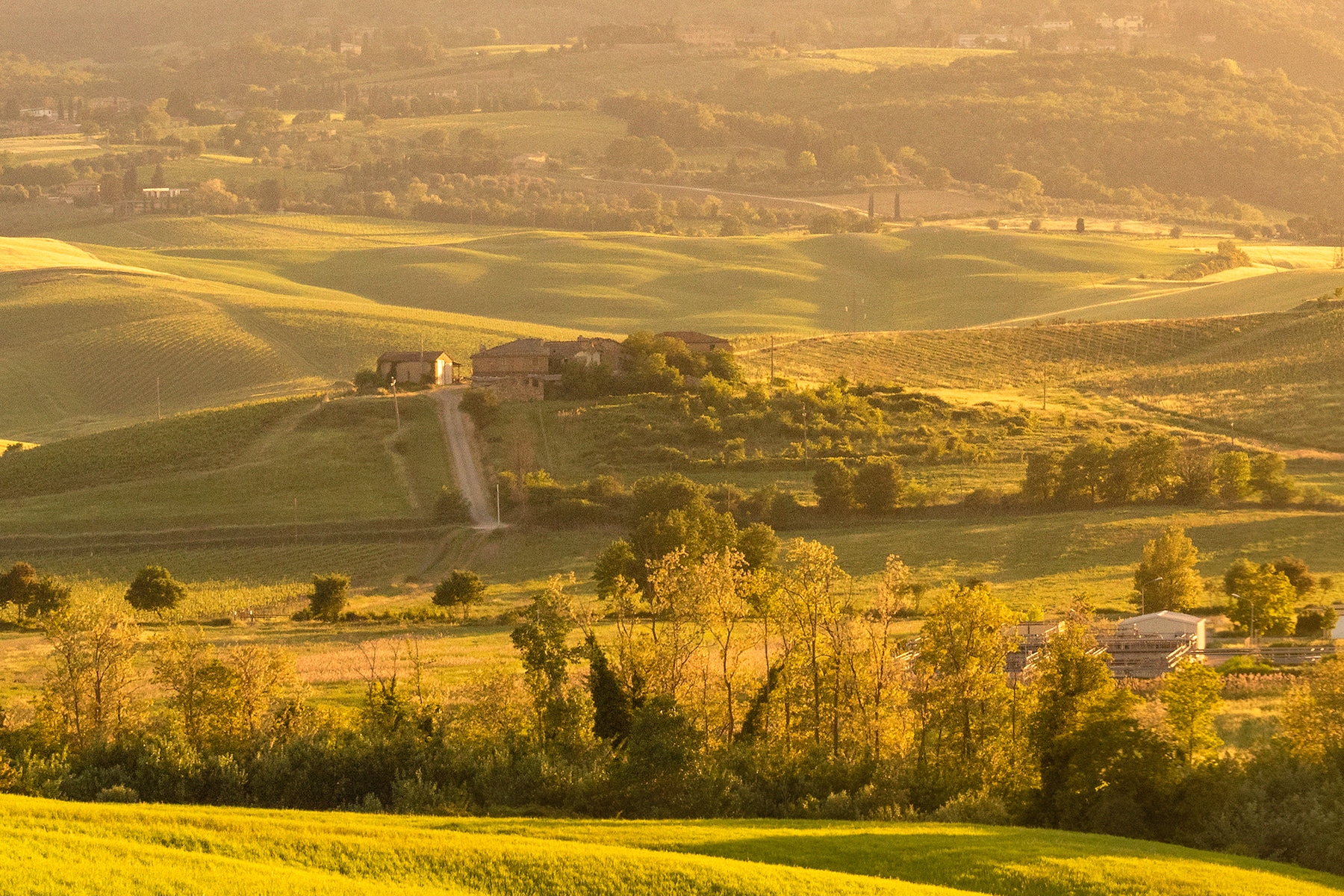 This circle of cypress trees is one of many such deliberate arrangements found in this area. Known as the Val d'Orcia, this picturesque farmland sits between the wine-famous hill-towns of Montalcino and Montepulciano.