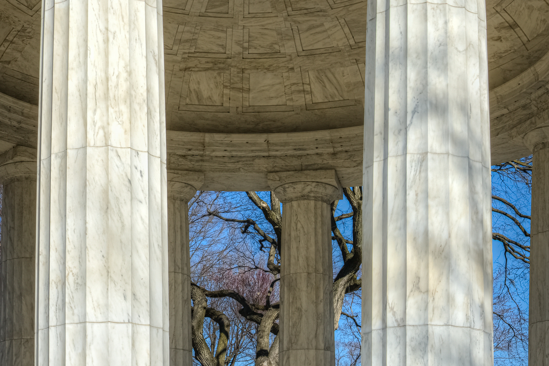 Keeping in line with the iconic architecture that comes to mind when thinking of D.C. monuments, the D.C. War Memorial fits perfectly into the very walkable National Mall. While I love the weather and green foliage during the warmer months, I am fascinated to see the forms of naked trees in the colder months contrasting the crisp blue skies of winter. Ash Woods, nature’s counterbalance to the man-made structure keeps me coming back to photograph this location. The field of view of this particular image is about 280 degrees, nearly three times what a conventional wide-angle lens would provide.