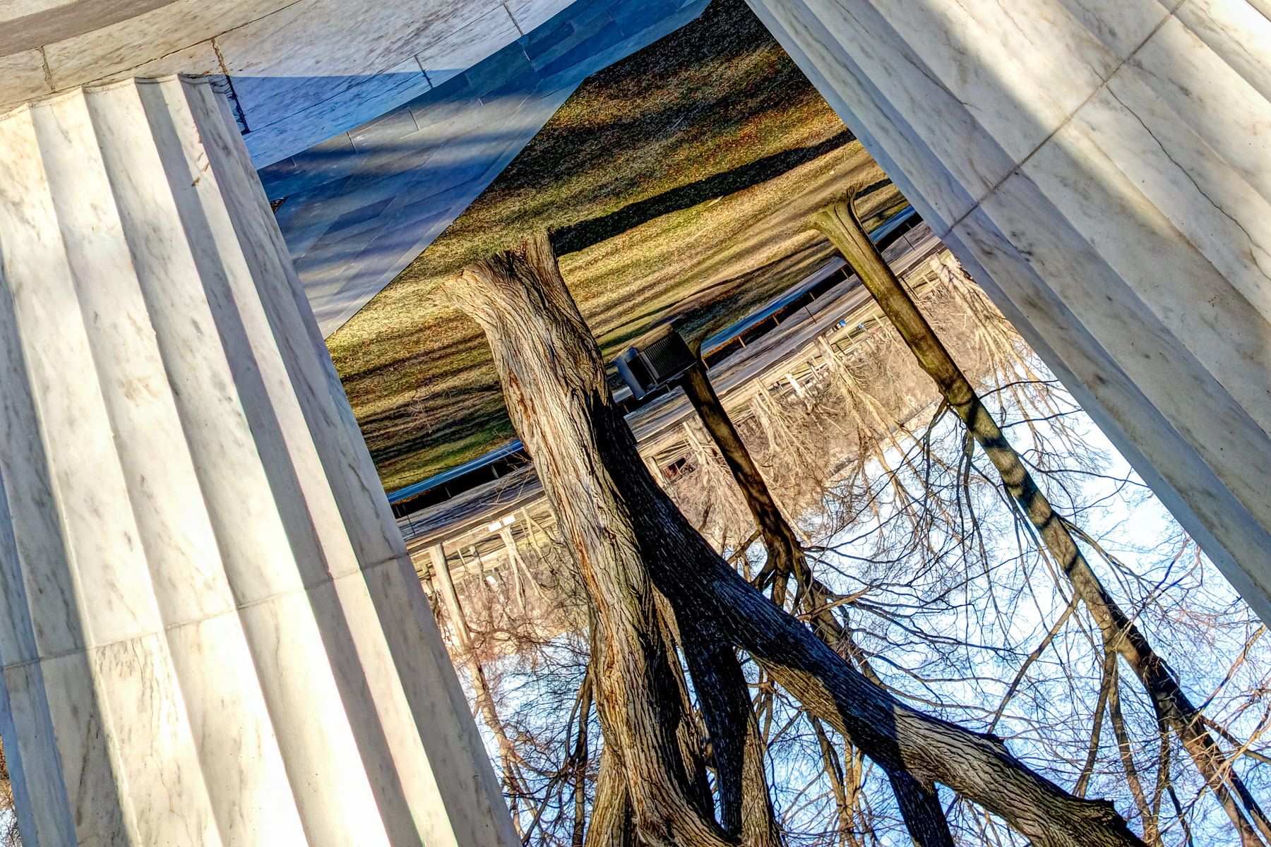 I chose the seal in the center of the floor as my center-point in this version as the symmetrical monument bends into this fascinating perspective. I didn’t shoot this panorama until two years after my first. In 2013 I hadn’t yet figured out the trick of taking the “nadir photo” (the point vertically beneath the camera center at the time of exposure) while producing the seamless result seen here.