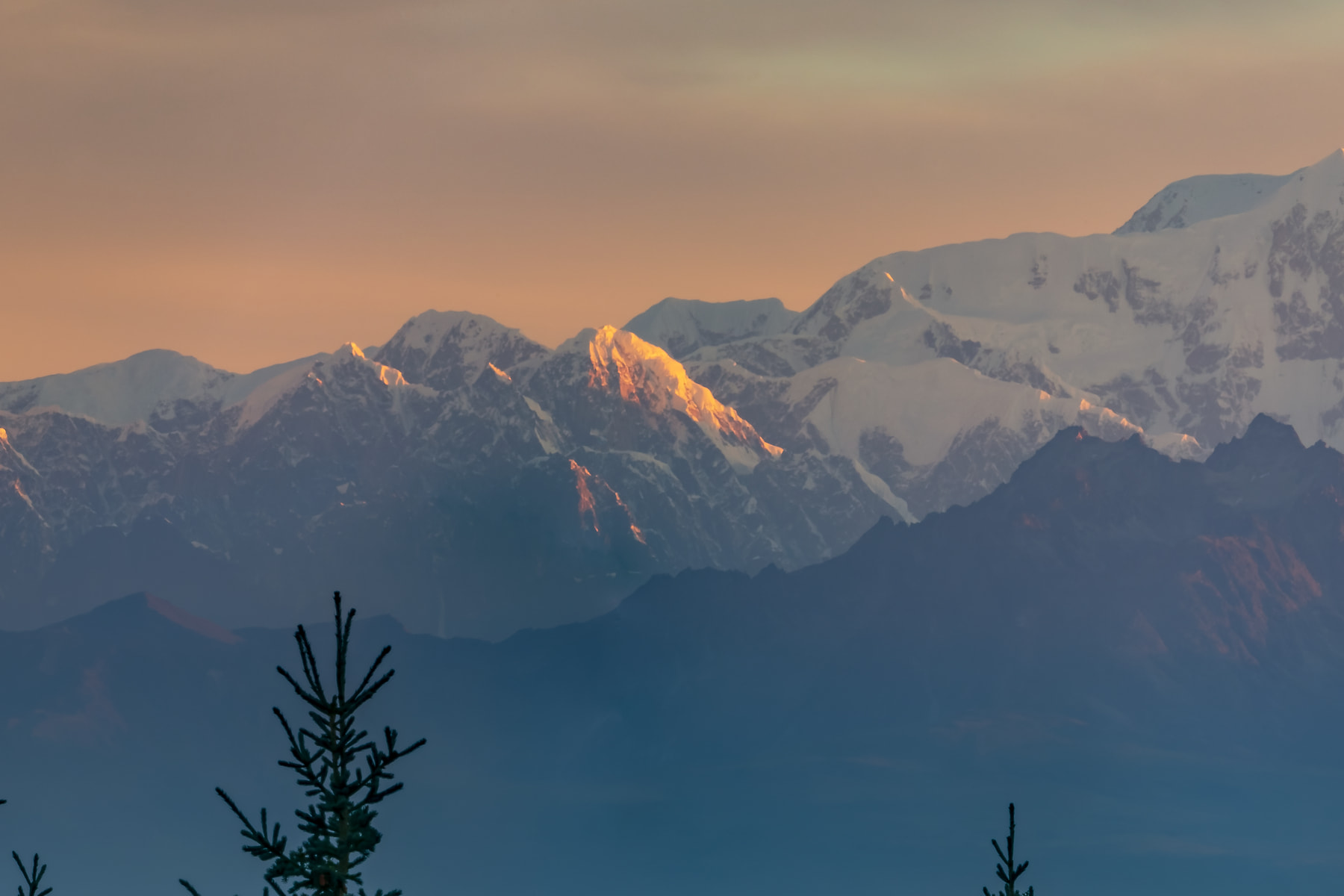I could hardly take my eyes off of the scene long enough to shoot my photos. The clouds literally exploded in hues of orange. The sides of the mountains were aflame in Alpen Glow as the sun peeked over the horizon. This is one of the largest photos of Denali that I shot during our Alaska tour.