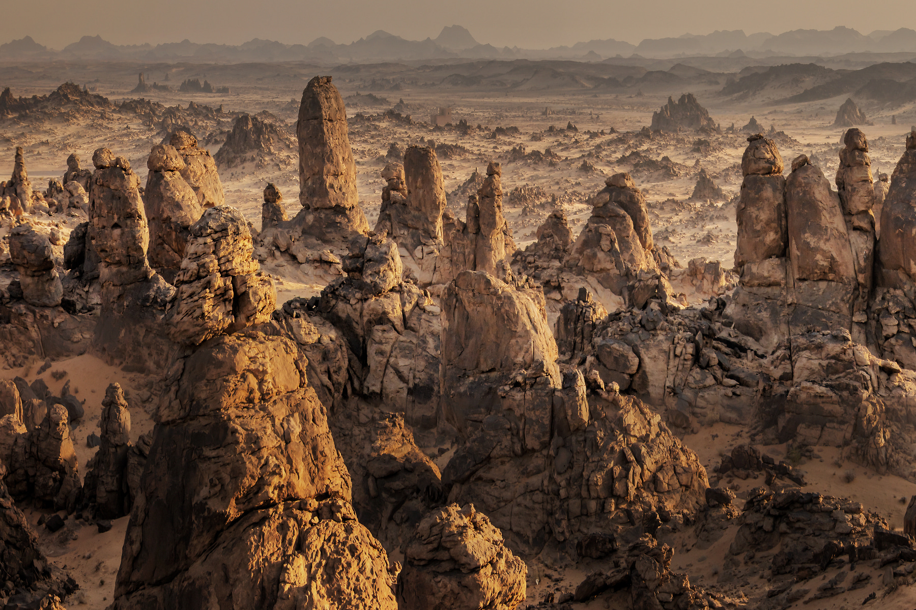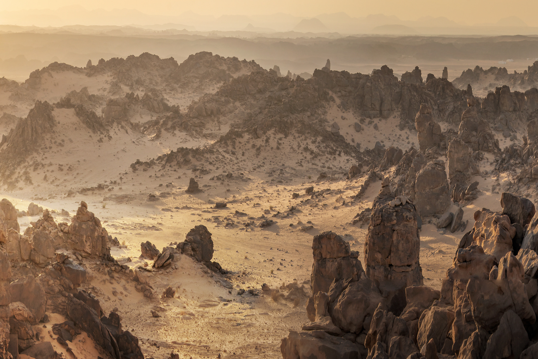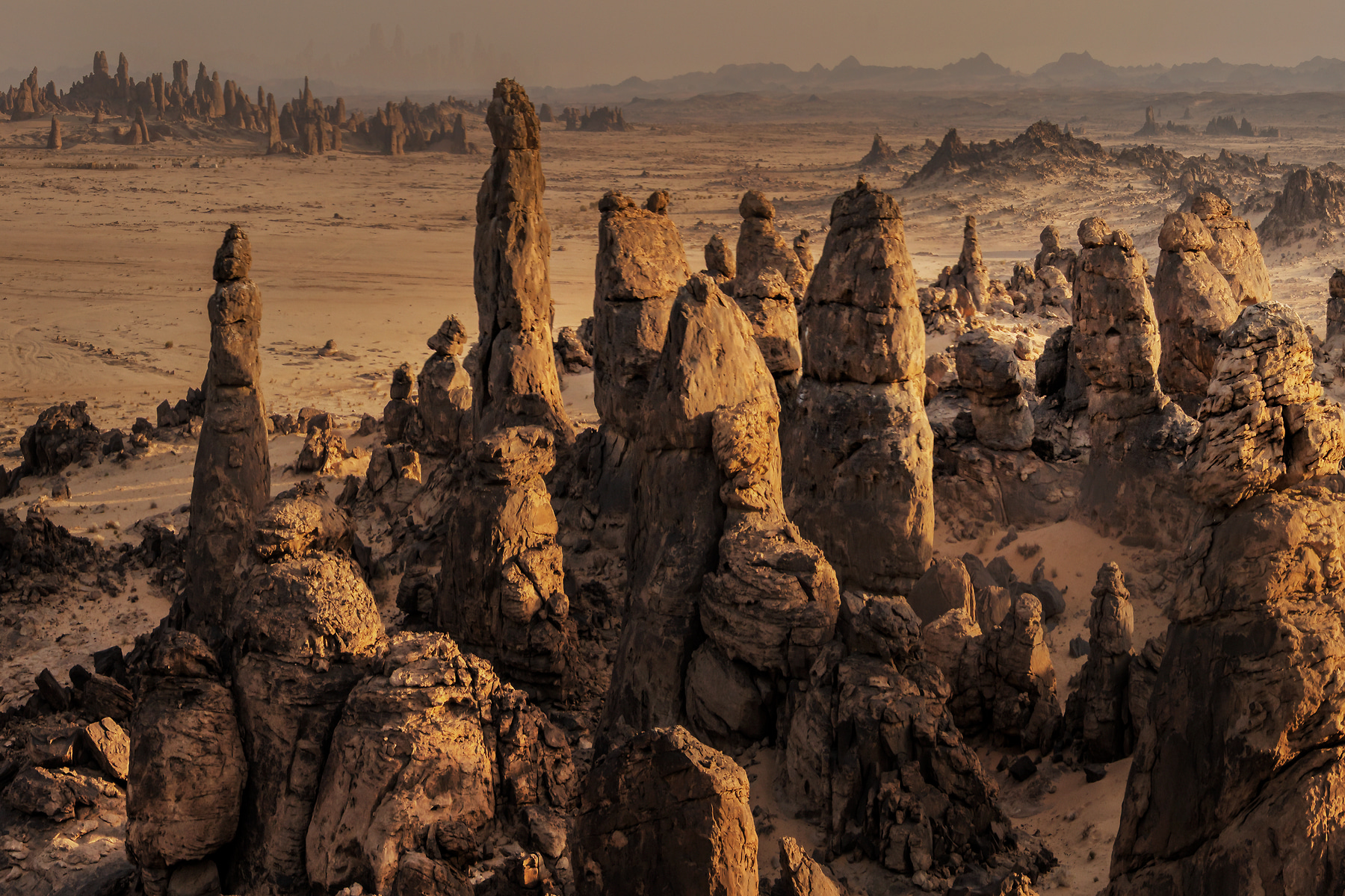 Never before have I been anywhere so desolate and remote as the Arabian Desert in Saudi Arabia. Famed for the exploits of Lawrence of Arabia in the first world war, the area is truly unspoiled. With an area of 233,000 square miles, it is the fifth-largest desert in the world stretching from Yemen to the Persian Gulf and from Oman to Jordan. The most amazing thing is if you have a four-wheel-drive vehicle, you can literally drive off the road for thousands of miles—if you don't get stuck. Up and down dunes the only restriction being one's lack of courage to foray further and further from civilization. Littered with the occasional Bedouin and thousands of free-roaming camels, when you stop the car, all you can hear is silence. No Planes, no trains, no automobiles...nothing. The Bedouin have a phrase coined from this experience; "Only in complete silence will you hear the desert". So true.