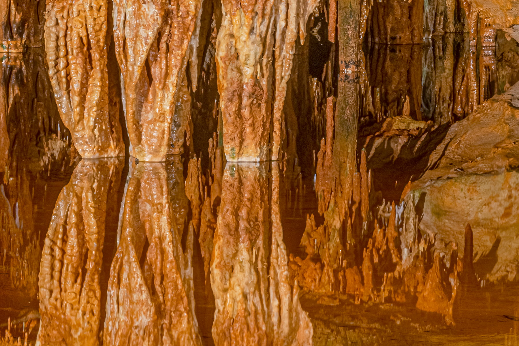 Like many images of mine this is a higher resolution version of a previous image I made during a day trip with my family in the summer of 2019. It proved to be a challenging scene to photograph. I was allowed two hours, a tight window when considering the need for multiple exposures to capture the dynamic range. That compounded with having to redo every exposure at multiple focal planes to later composite for focus-stacking quickly used up the allotted time. The heavy rains and warmer temperatures above ground made for a lot more drops from the stalactites so I had to be particular in my timing of the photos of the reflection itself.