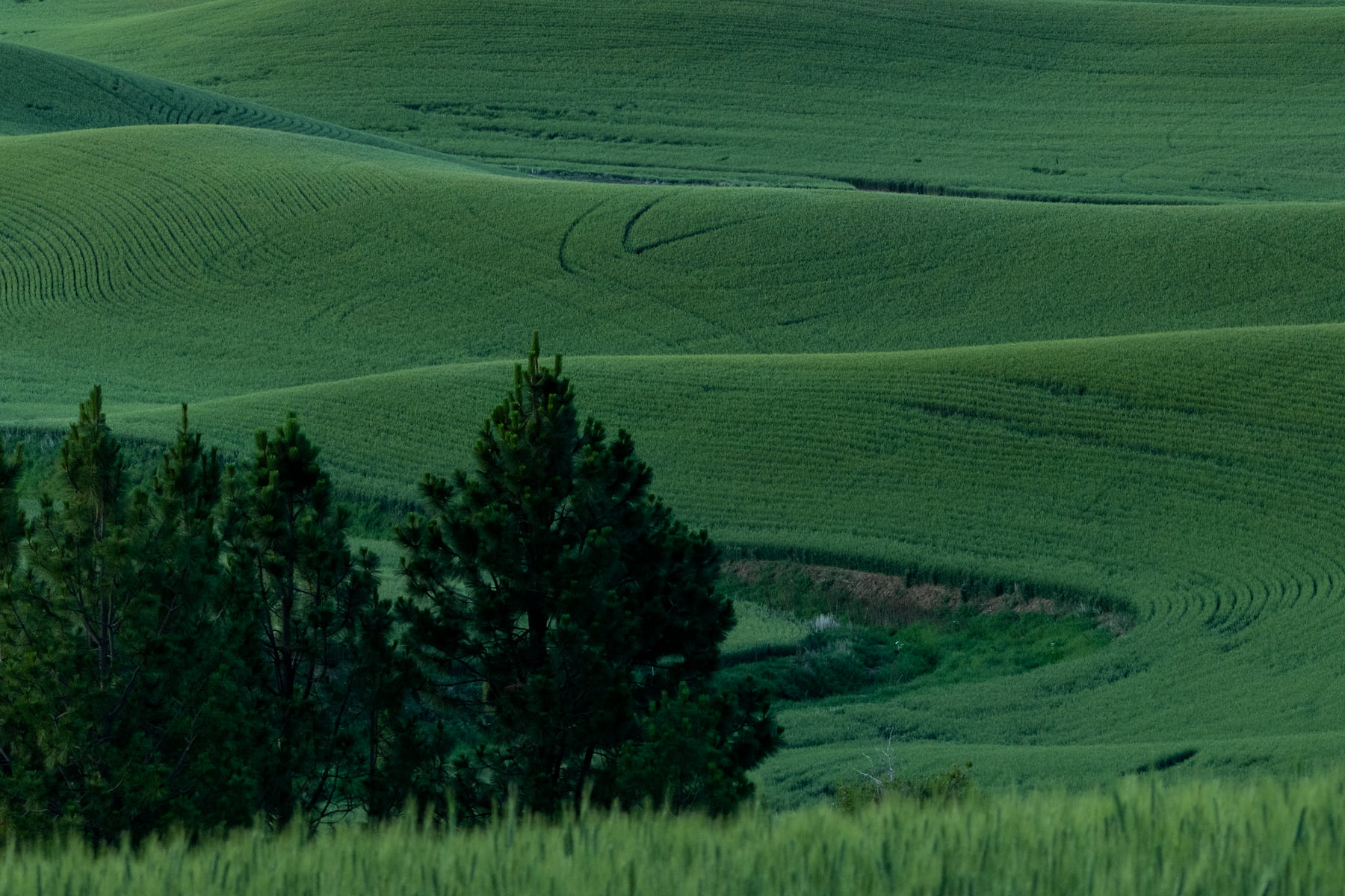 When I think of the Palouse I think of windy roads, old broken down barns and lonely windmills but most of all I think of endless rolling hills of green in early Summer. It's often hard to compose an image that looks "simple" when there is so much complexity in the contours and hues of the different crops. Looking at a scene and seeing the image takes time in the Palouse, its a bit different than looking at a mountain reflecting into a lake.