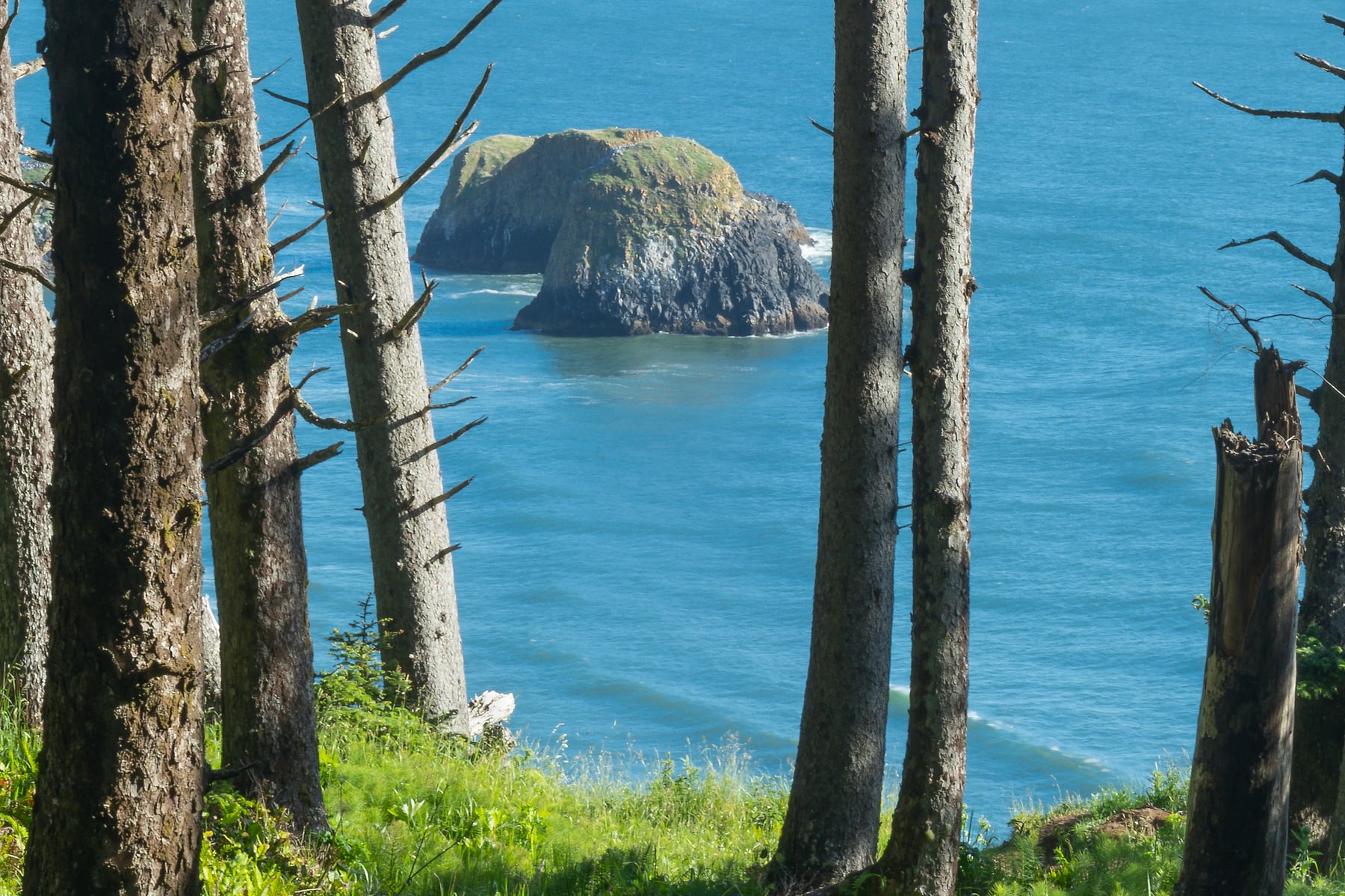 I could start and stop by saying "the majestic Oregon coast" and that would be a complete and accurate statement. This view is from Ecola State Park in Cannon Beach, Oregon which is a cute small tourist town on the north Oregon coast. The beach is wide and long and almost everyone stays on the beach or roams the many stores. On the north side of town there is a small road that leads up to Ecola State Park. This view is from one of the trails that works its way through the forest. I've been on the trails many times and have had it mostly to myself.