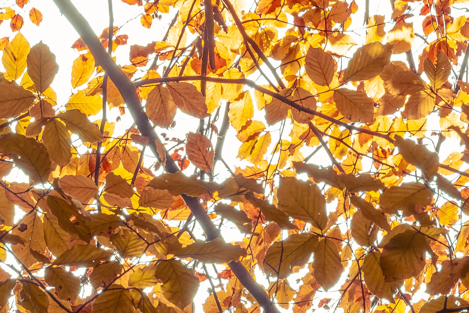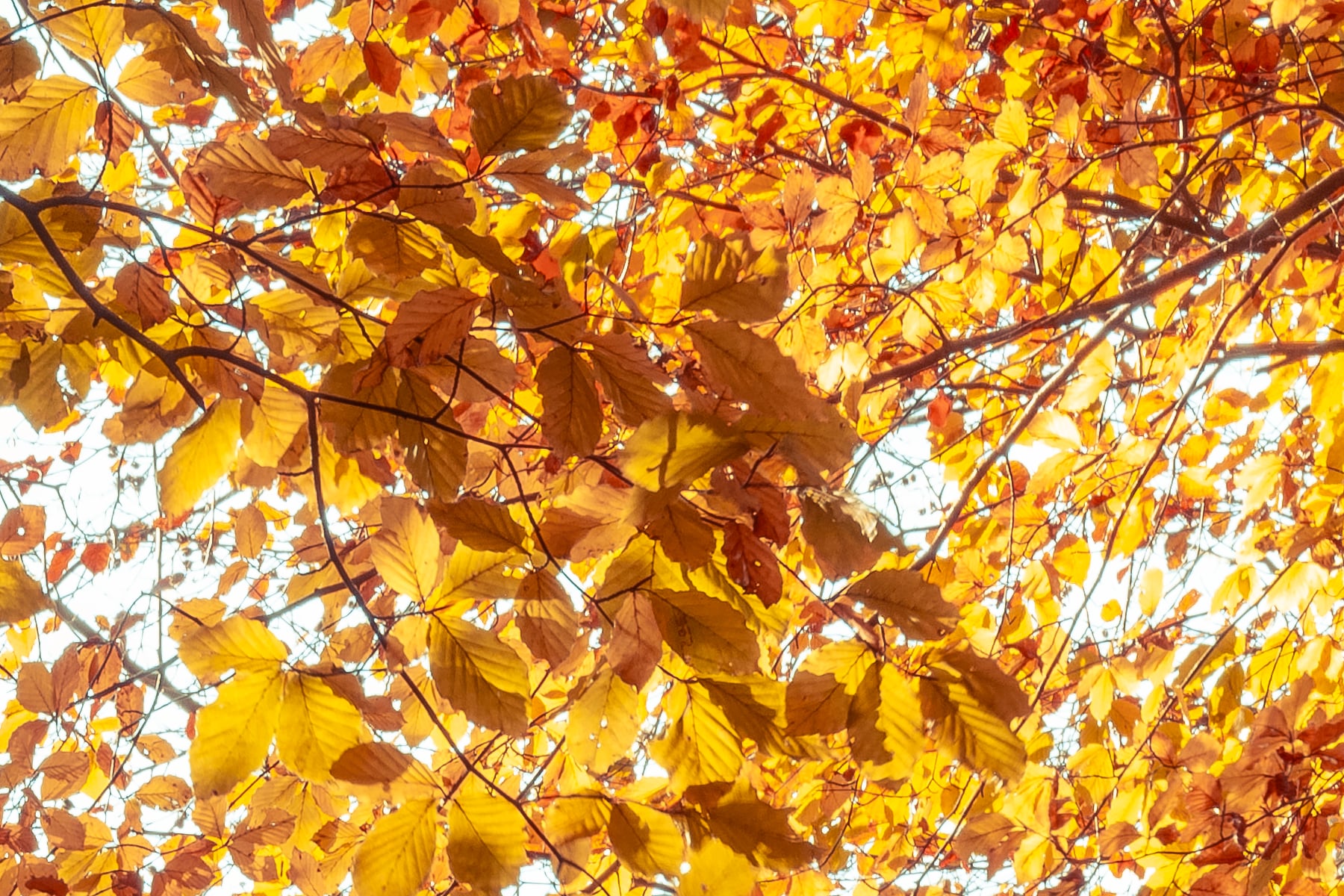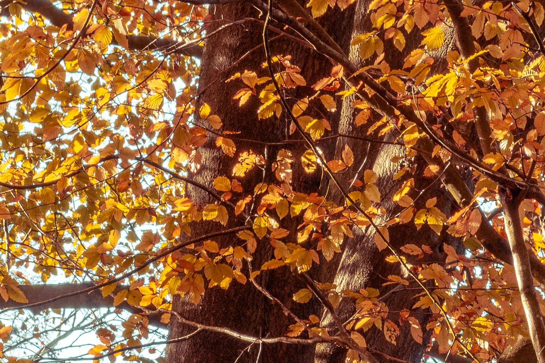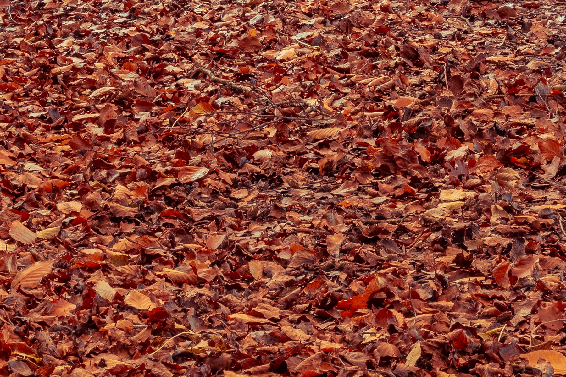 As the gentle breeze rustles through the trees, the crisp autumn air carries the earthy scent of fallen leaves, evoking a peaceful and nostalgic atmosphere. The soft light filtering through the branches highlights the intricate details of each leaf, emphasizing the rich textures and hues that define the beauty of fall. The winding path, partially concealed by the layers of leaves, hints at an inviting journey into the heart of the forest, where one can embrace the calm and solitude of nature.